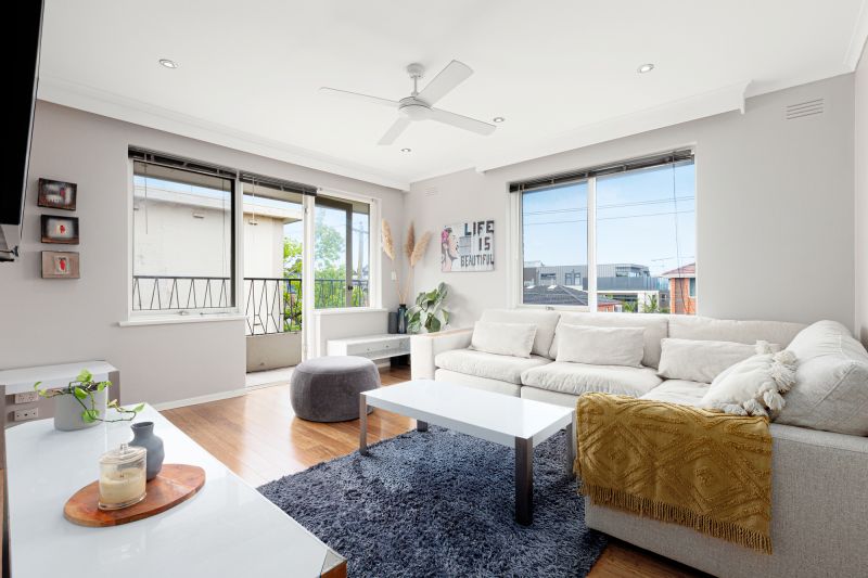 Tucked away at the rear of a beautifully maintained 1940s block (1 of just 12), this stylishly refurbished ground-floor apartment offers the perfect blend of vintage charm and modern comfort. Step inside to discover polished timber floors, elegant period features, and a light-filled lounge/dining area with a cosy gas heater.