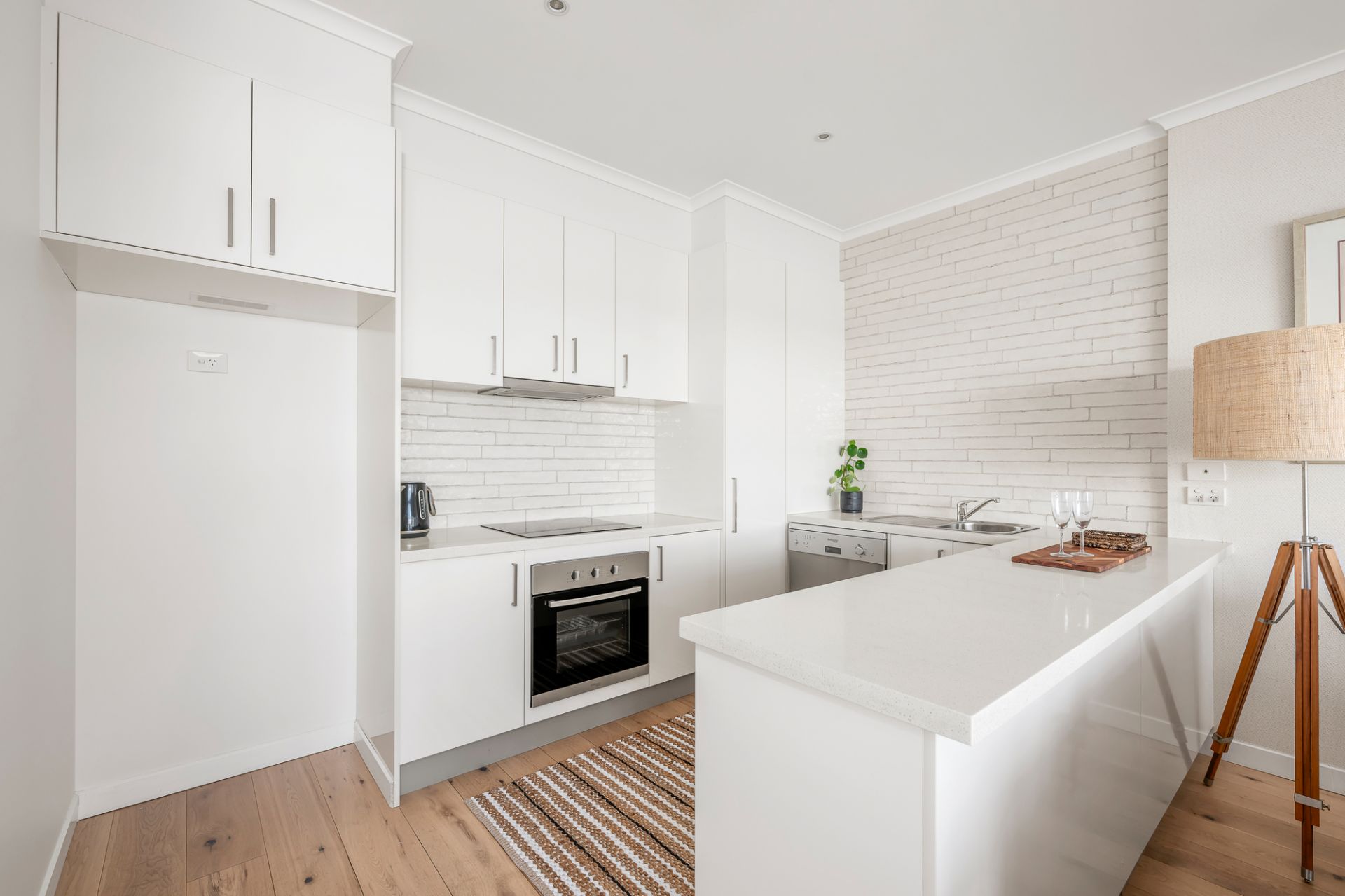 This stylish and light filled two-bedroom apartment in an exclusive block of only three apartments features a large, covered balcony facing the street with bay glimpses.