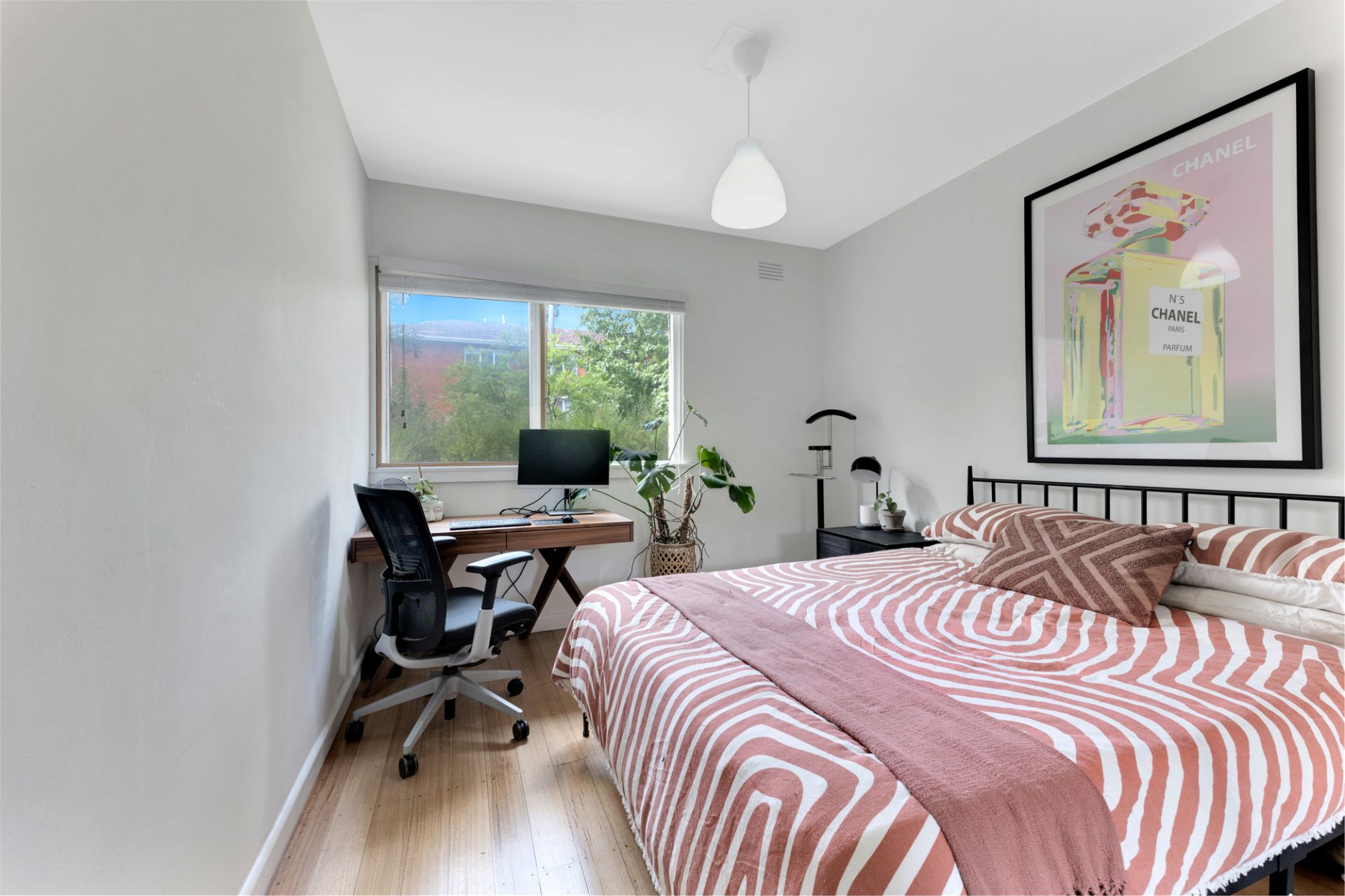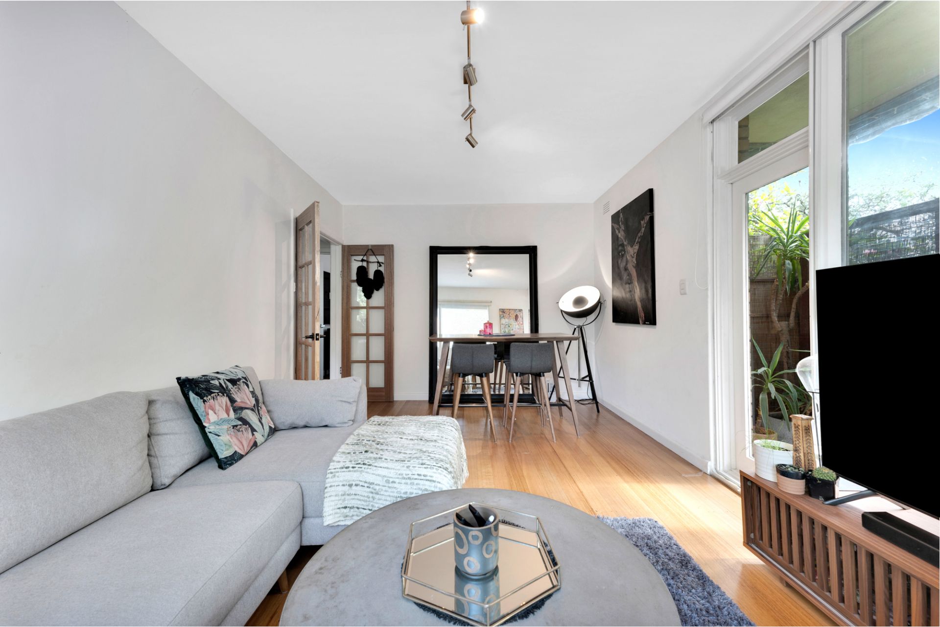 Ground floor apartment of generous proportions in boutique retro double-brick block surrounded by beautifully landscaped communal gardens, this refurbed inner-city pad offers loads of space & light in a top St Kilda East location. Boasting polished hardwood floors throughout, a spacious open-plan living & dining area welcomes you with access to a private north-facing courtyard with streams of natural light & effortless indoor-outdoor living.