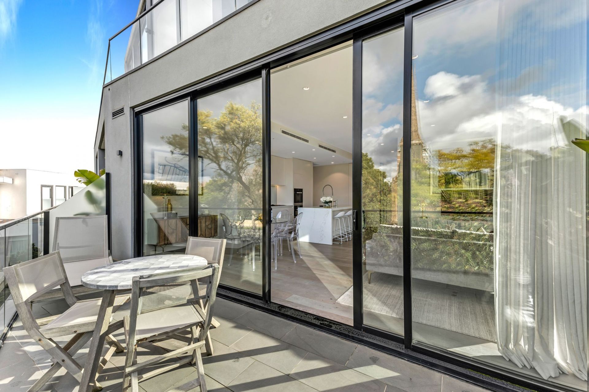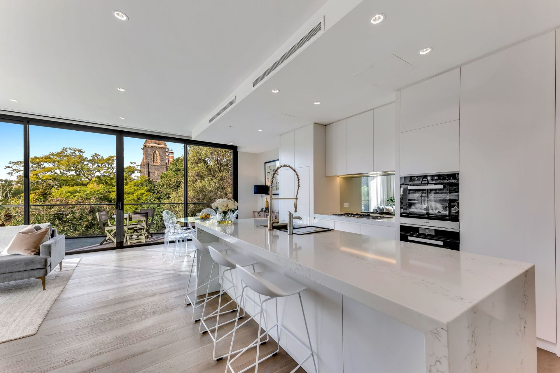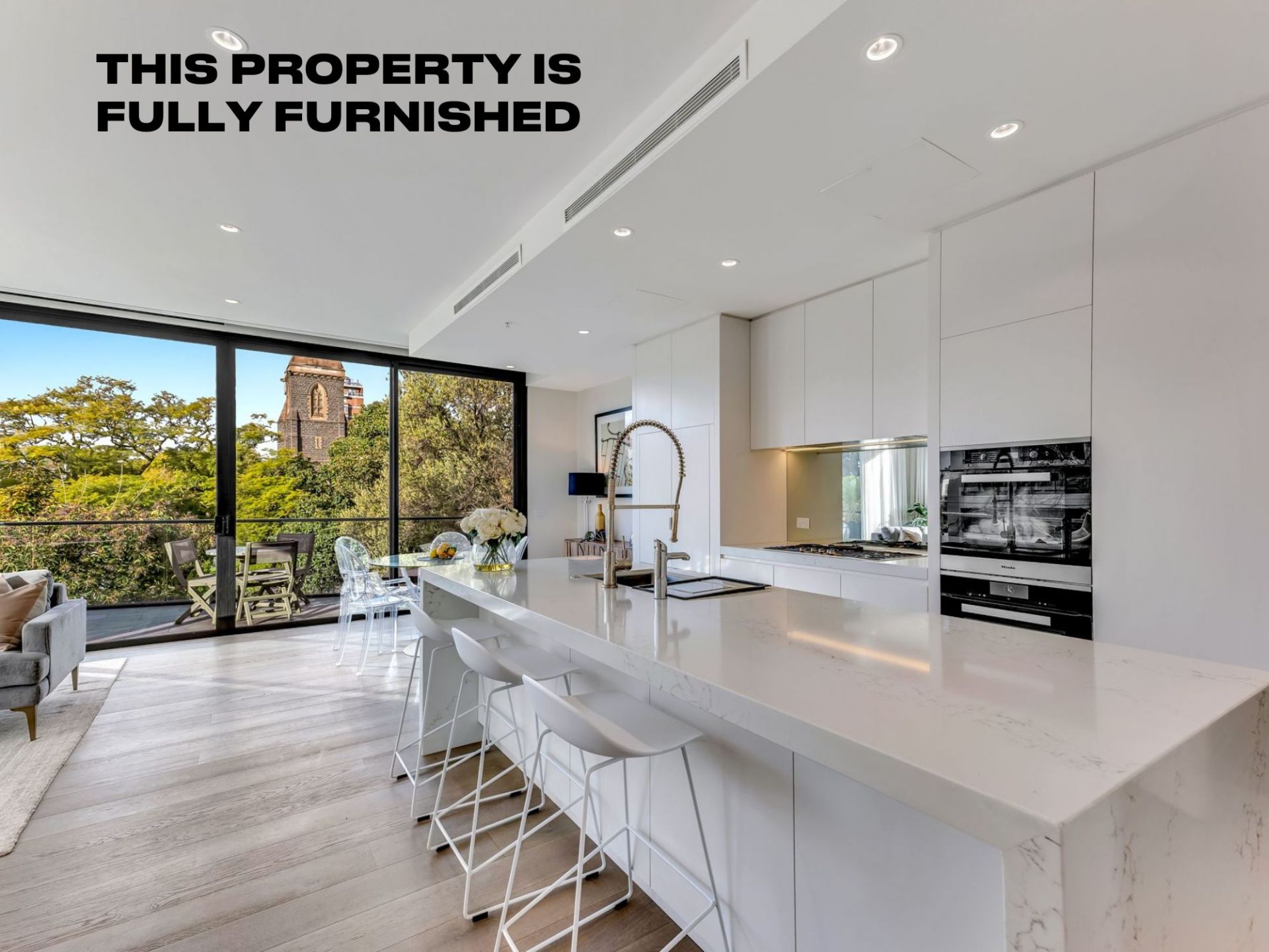 Designed by ASCUI&Co Architects, this home contains stunning high quality designer finishes complimented by high-end furniture and top of the range European appliances including a full-size Miele oven & speed oven, integrated Miele dishwasher, Miele gas cooktop and an integrated double fridge and freezer. Elegant white stone bench tops and a spacious balcony with fantastic leafy views flawlessly compliment the open plan kitchen and living spaces. The master bedroom - grand in every way - has an abundance of space with built in robes and a full size ensuite equipped with bathtub and separate shower - the perfect tranquil escape. The second bedroom has no detail spared, also offering spacious built in robes and an ensuite with shower. Further features include automatic blinds, ducted heating & cooling, European laundry, and 2 secure underground basement car space (tandem).