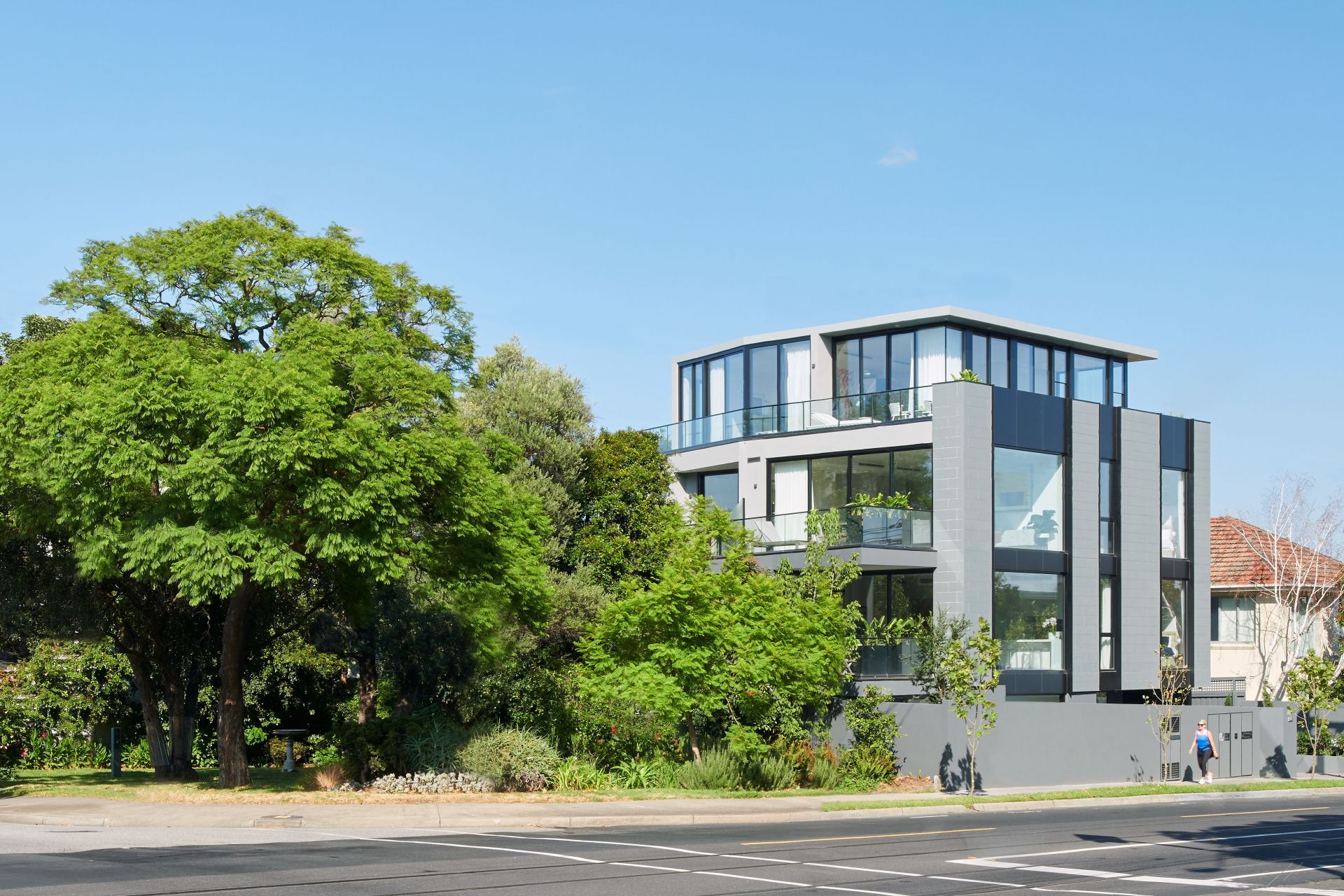 The beautiful bluestone facade has been cleverly designed by ASCUI&Co Architects to create a visual bookend to the traditional bluestone blocks of St John's Church across the road.