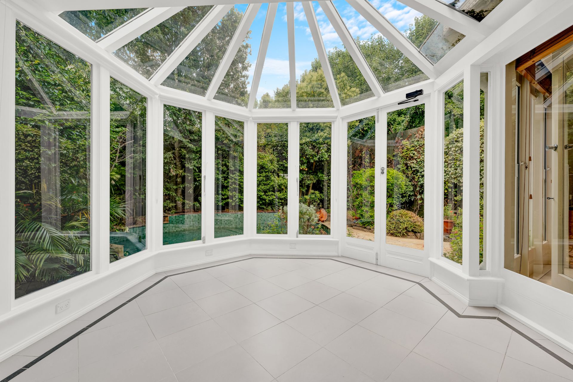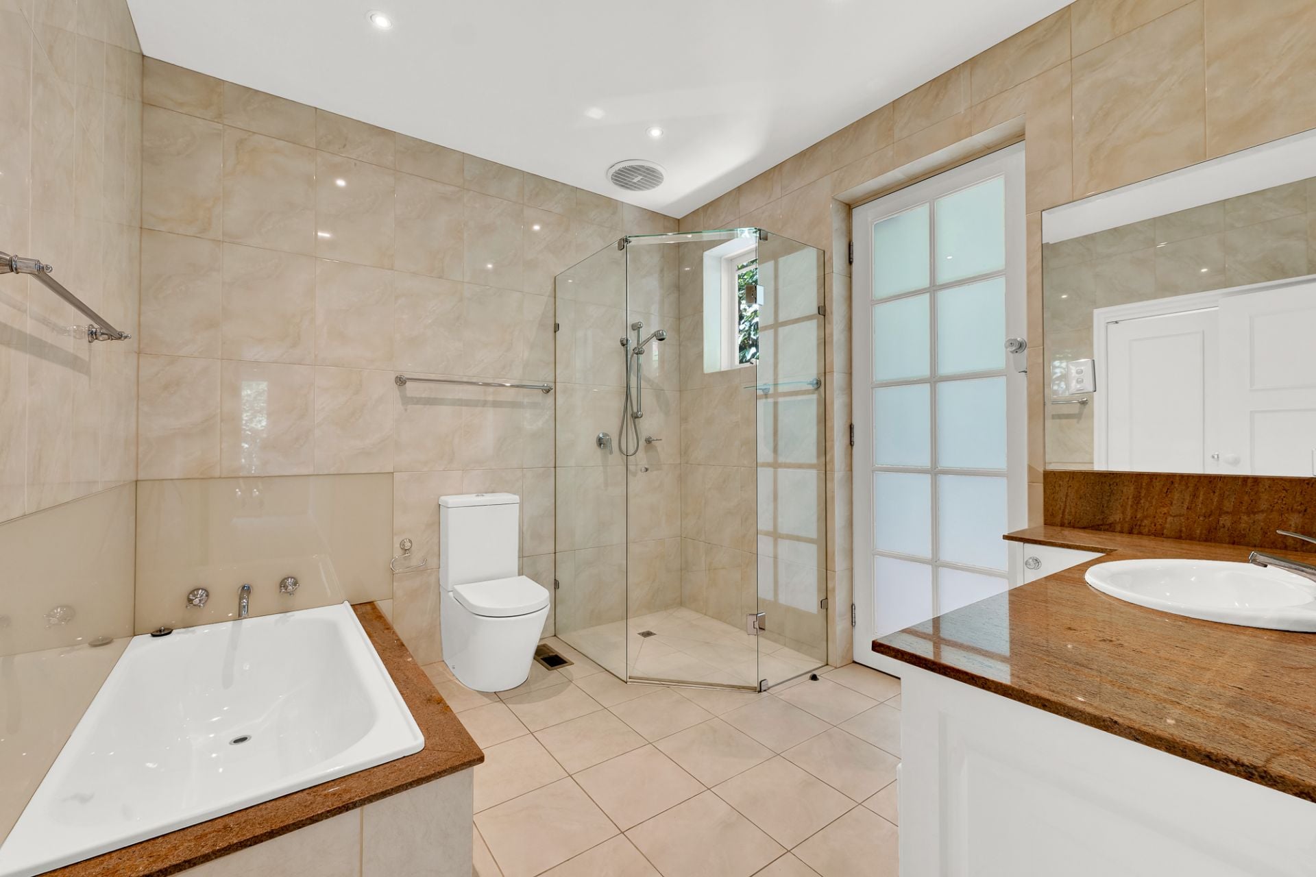 Surrounded by mature gardens that provide the utmost privacy, the home opens to a series of generously proportioned main rooms. The ground floor features a large living area with a cozy gas fireplace, seamlessly connected to the adjoining dining room, and flowing into a stunning conservatory or sitting room bathed in natural light. The kitchen, with its adjacent meals area, offers both style and function, while a full-sized separate study adds versatility. The downstairs master suite impresses with its ensuite, extensive built-in robes, and an additional powder room for guests. An extra room in the downstairs area is perfect for a study or a spare bedroom.