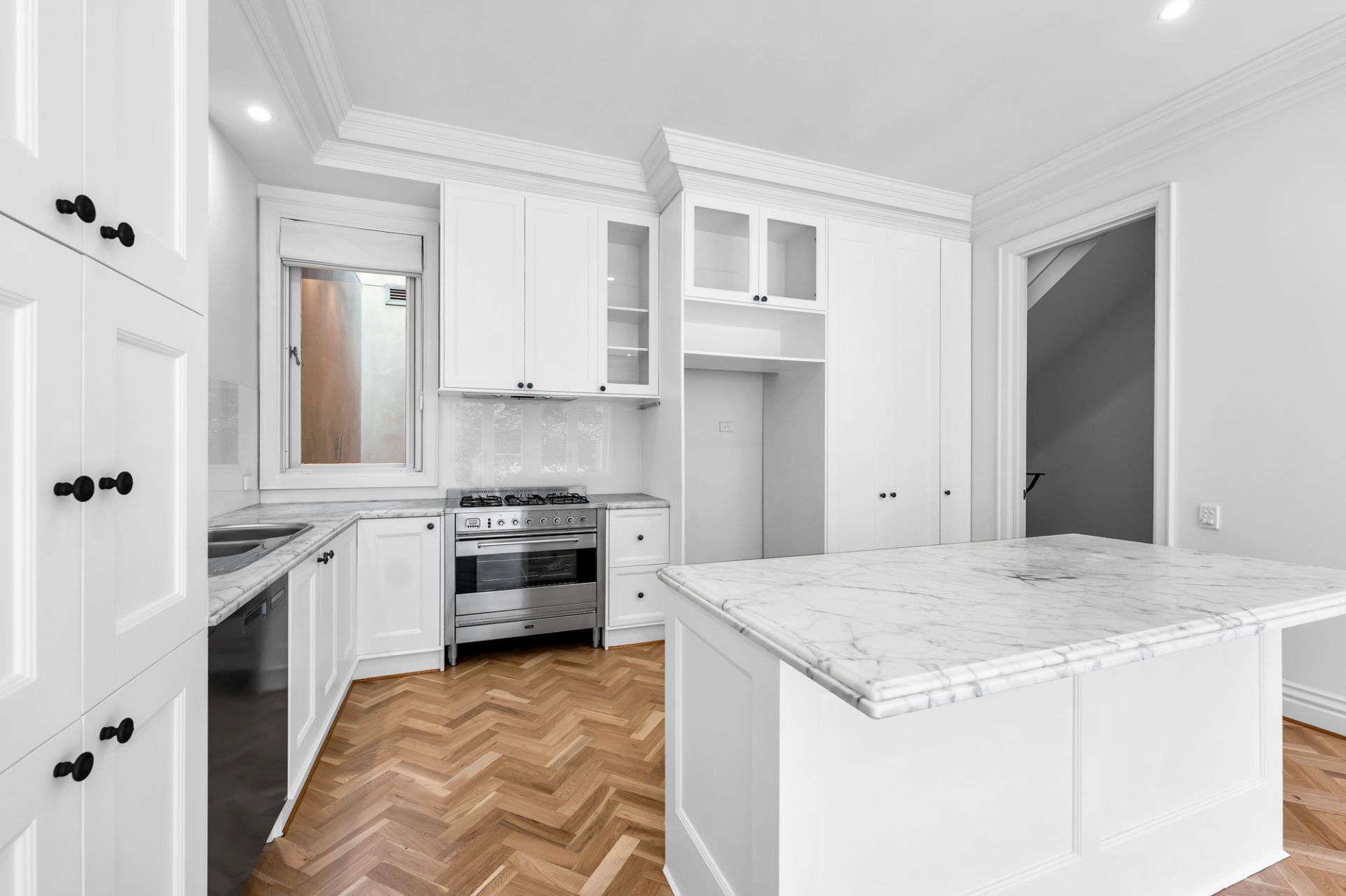 A perfect blend of timeless elegance and contemporary style is showcased through the welcoming entrance hall with French Oak flooring flowing through to an inviting sitting room and formal dining room. Superbly equipped with modern appliances and marble benches, the gourmet kitchen and generous open plan living room, extends out from steel framed doors to a gorgeous north facing leafy courtyard garden. Both a lift and stairs ascend to the second level main bedroom with bespoke dressing room and designer en-suite, two further bedrooms both with built in robes and en-suites, study/4th bedroom with custom joinery. The basement level offers family laundry, double garage with an abundance of storage.