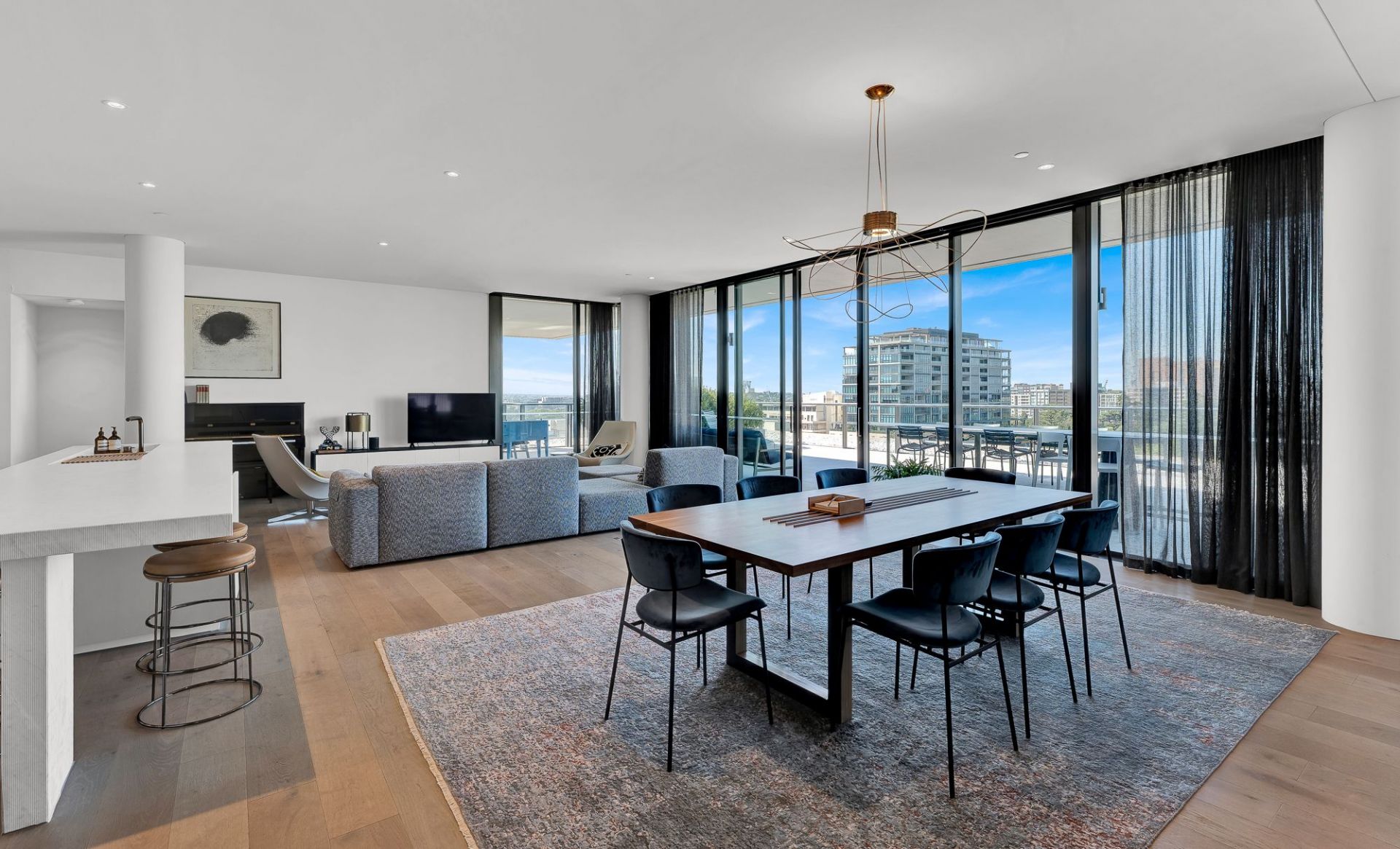 Experience unparalleled sophistication in this spectacular 9th floor sub-penthouse, commanding breathtaking views across Fitzroy Gardens, the city skyline, the Arts Precinct, the MCG, and Port Phillip Bay. Situated within the highly sought-after Bates Smart-designed complex, The Eastbourne, this residence stands as an iconic showcase of cutting-edge design, opulent proportions, and world-class amenities.
