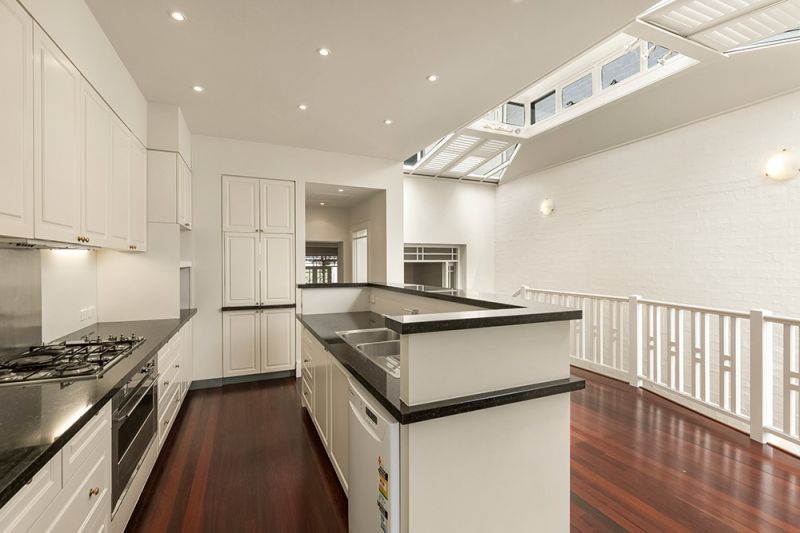 Period ceilings and superb proportions, hydronic heating, cellar, powder room, low maintenance courtyard, automatic double garage via access from the ROW.