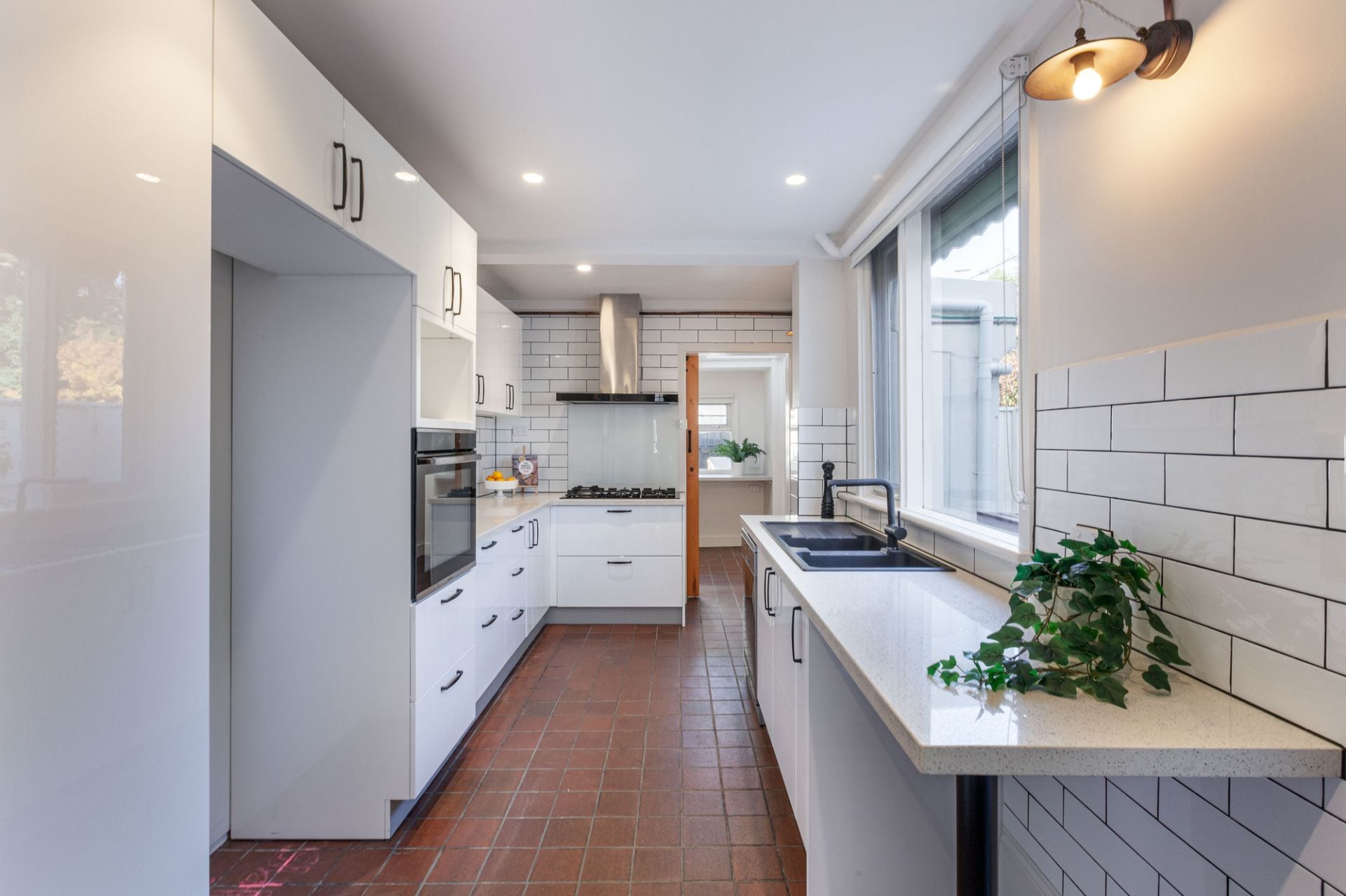 At the rear of this low-maintenance home, a newly renovated kitchen is a stylish space which offers stone benchtops and breakfast bar, stainless appliances including a 90cm wide five-burner cooktop, a floor-to-ceiling pantry cupboard and stylish subway tiles with open views to the park which is a unique feature that other terraces do not provide.