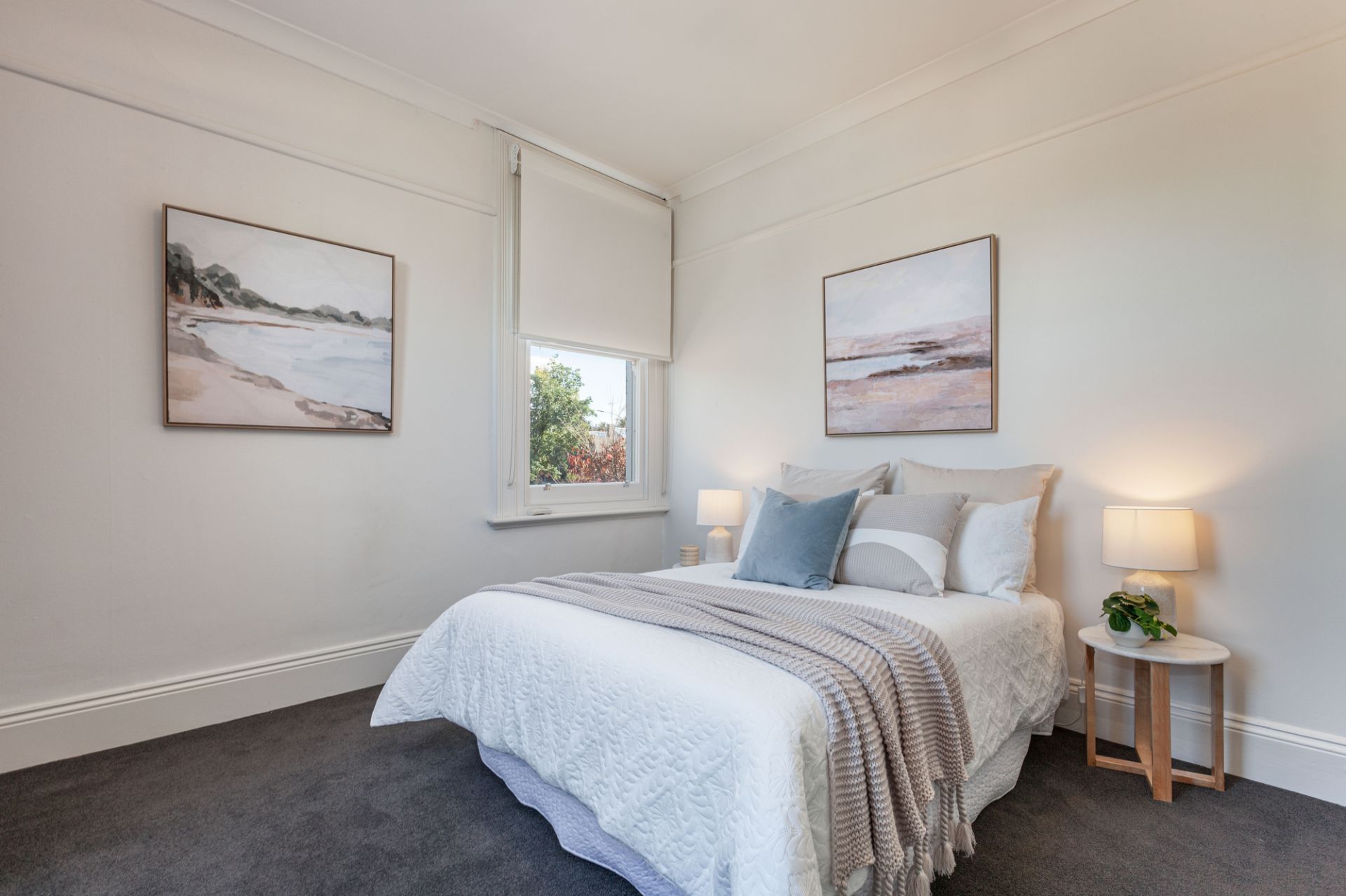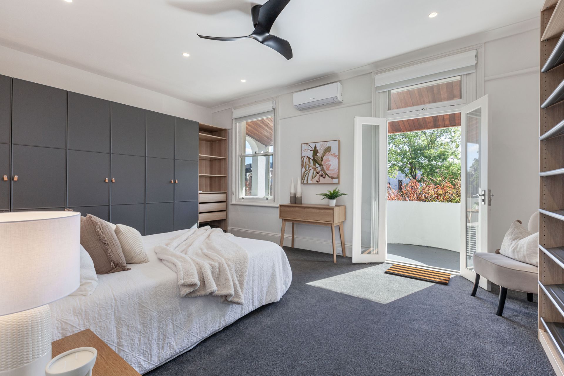 Upstairs, two spacious bedrooms include the tranquil master at the front which boasts two walls of exquisite built-in robes with extensive storage. This serene space also opens on to a sunny north-facing terrace with views over the neighbourhood which is the perfect spot for a morning coffee or even a sundowner.