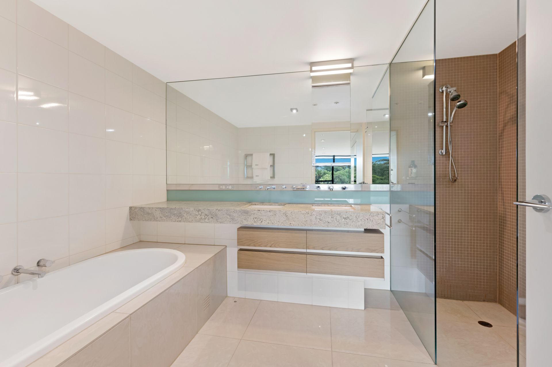 Enjoying open plan living and dining areas highlighted by floor to ceiling glass opening onto entertainers terrace, granite kitchen showcasing Miele appliances and stainless steel benchtops, main bedroom with substantial robes and designer ensuite with spa bath, generous second bedroom served by a bathroom with laundry facilities, basement parking for 2 cars.