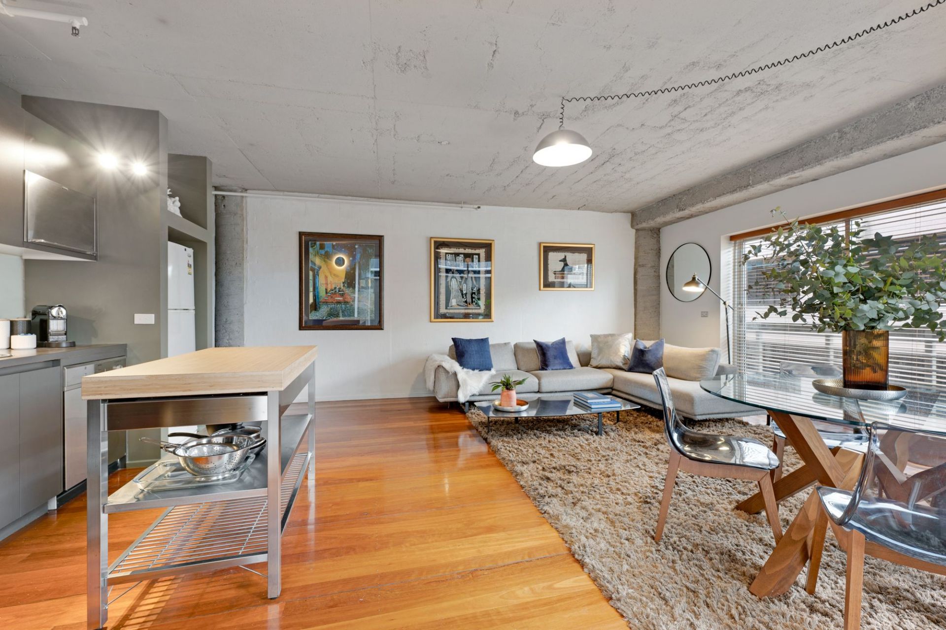 Elevated and north-facing this contemporary two bedroom apartment of generous proportions is located in the iconic Red Tulip building and is conveniently located right on the door step of Melbourne's most cosmopolitan quarters, all while being cocooned in peace, privacy and chic industrial style.