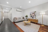 Step inside to a light-filled open plan living and dining area with split system heating and cooling, complemented by a sleek modern kitchen featuring stainless steel appliances. Both bedrooms include built-in robes and near-new carpet for added comfort, while the stylish central bathroom offers a shower over bath and a discreet European laundry.