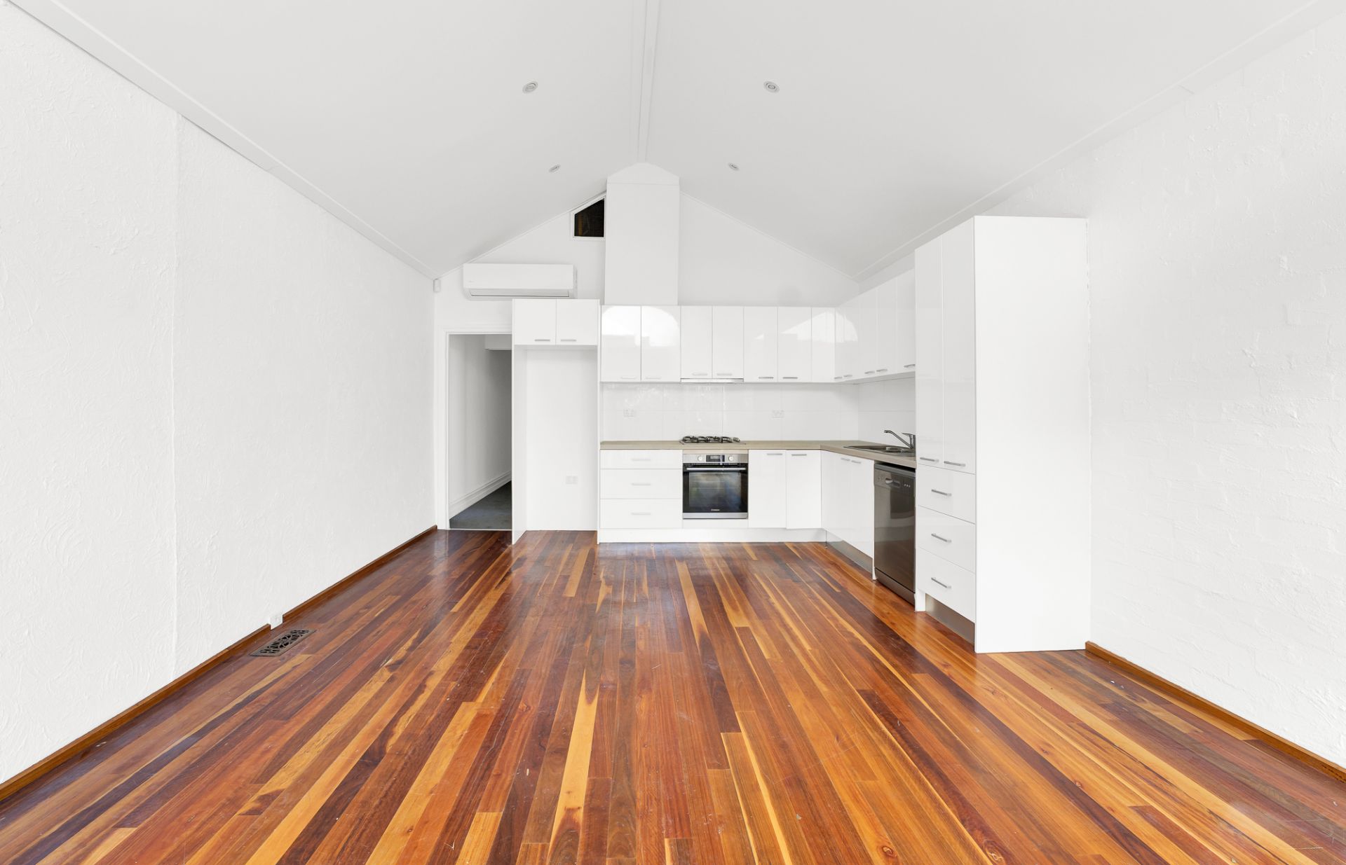 The home is rich in period character and provides immediate comfort, with high ceilings throughout and a well considered layout. A side hallway leads to two generous bedrooms, both featuring open fireplaces, while a central bathroom services the home. Toward the rear, a well appointed kitchen flows into a light filled living and dining area, creating a welcoming space for everyday living.