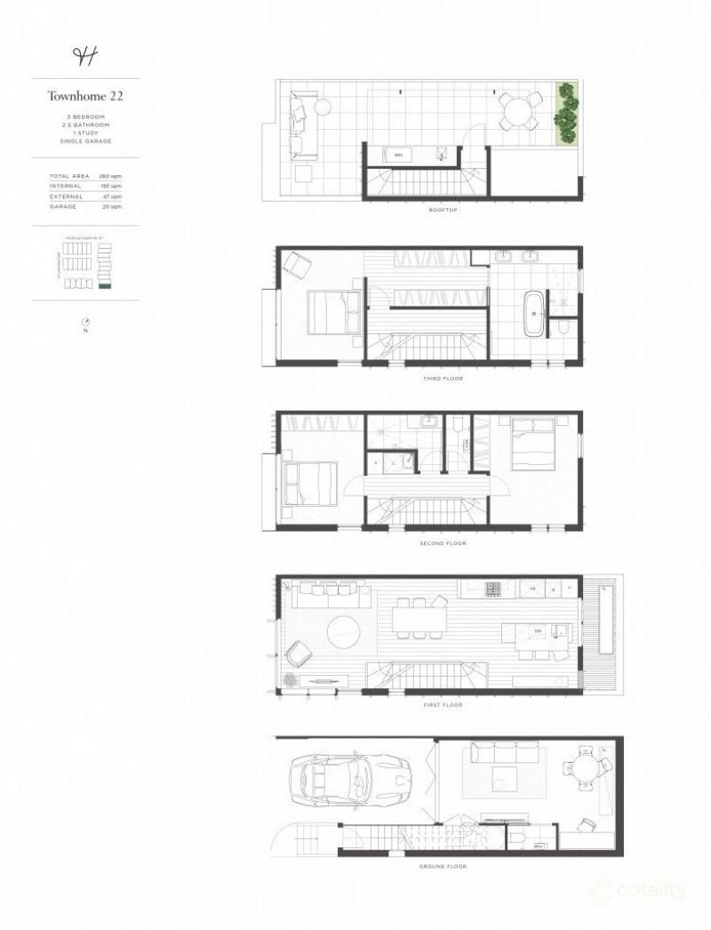 The accommodation levels are luxurious and private. Two bedrooms are serviced by a central bathroom, while the master suite occupies its own dedicated level complete with a beautifully appointed ensuite.