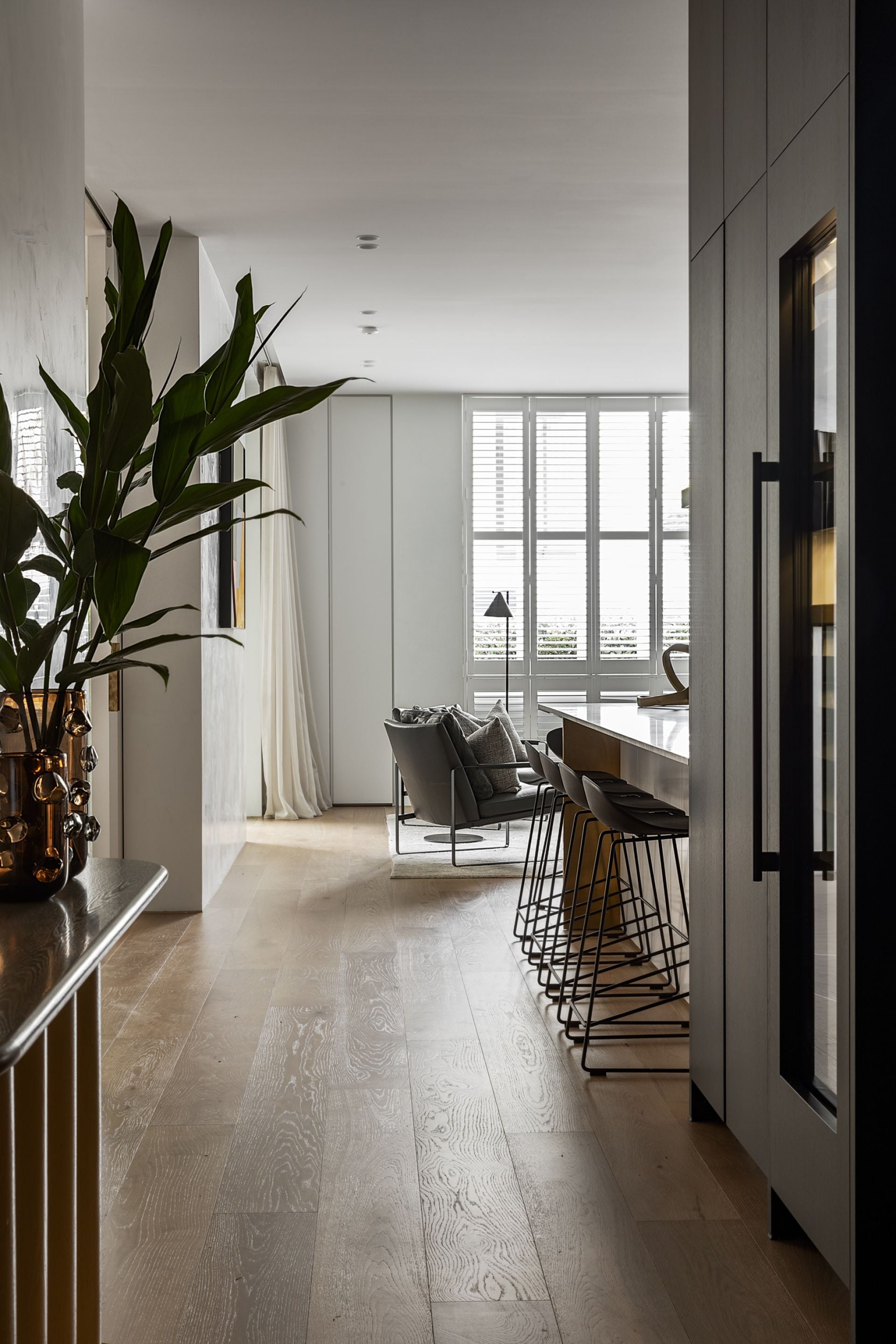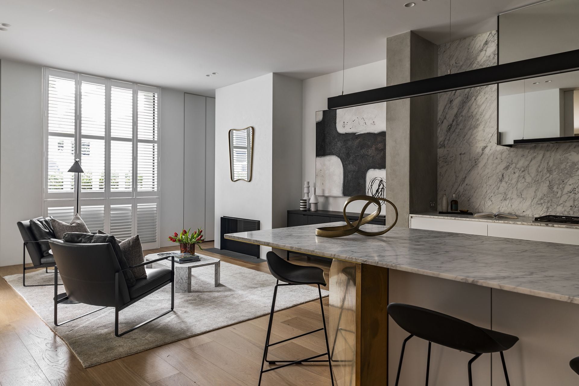 A marvelous combination of space and light, the ground floor apartment offers glamorous yet practical living with exquisite materials, minimum tones and elegant simplicity. Floor -to- ceiling windows create a great connection to the outdoors and glass sliders open to the north-facing terrace.
