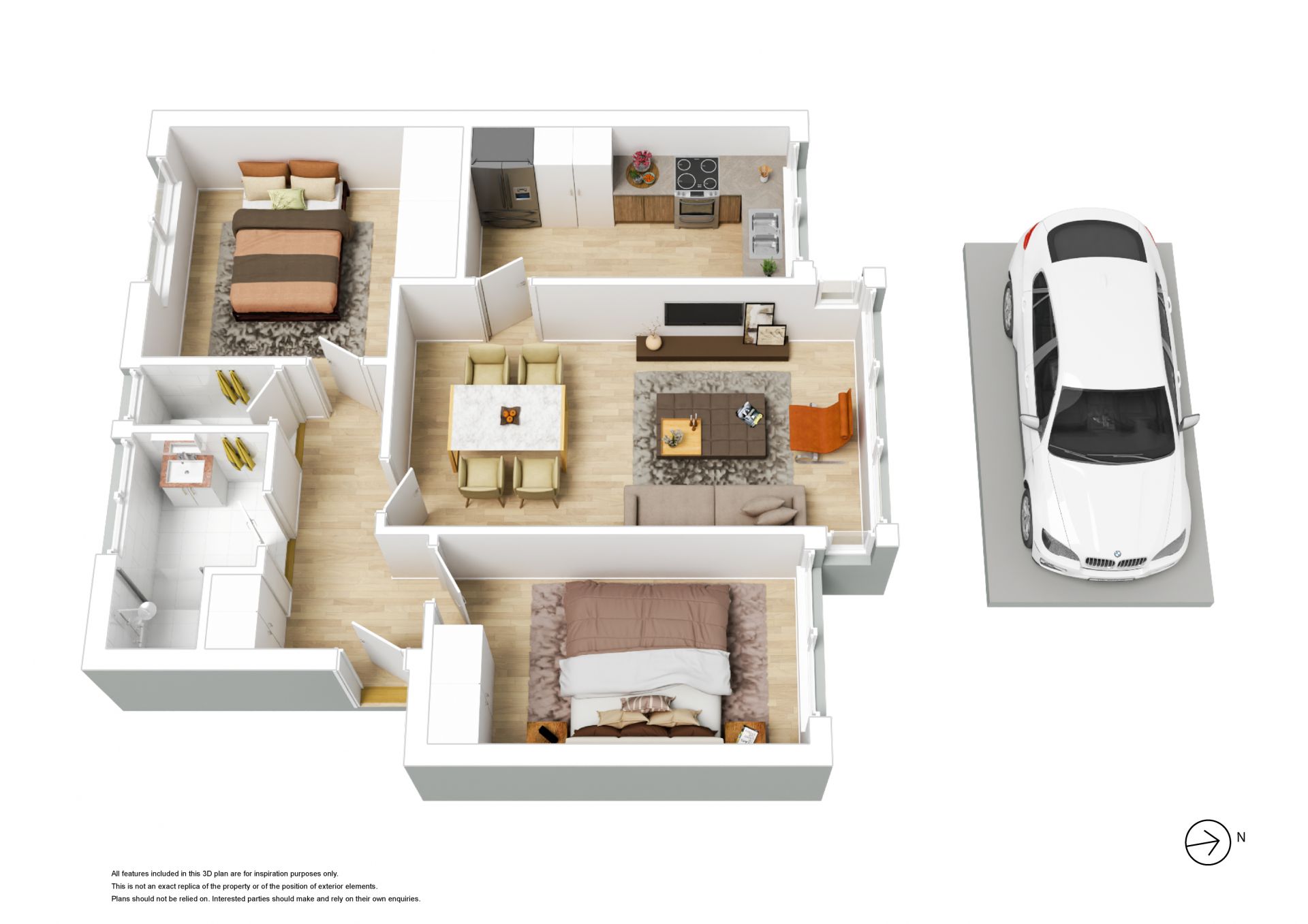 Spaciously laid out with a hallway to welcome you, the home boasts a lounge and dining room with edge to edge atrium windows that absorb the glorious north light all day long alongside the vast and mesmerising skyline vista. An adjoining kitchen functions with ease and is tastefully appointed with crisp white stone-topped cabinetry, gas cooking, dishwasher and terrific storage. Also features two well separated robed bedrooms served by a modern bathroom with stone vanity and separate toilet, laundry amenity and undercover gated parking for one in a block with double checkpointed secure intercom entry and resilient aluminium windows.