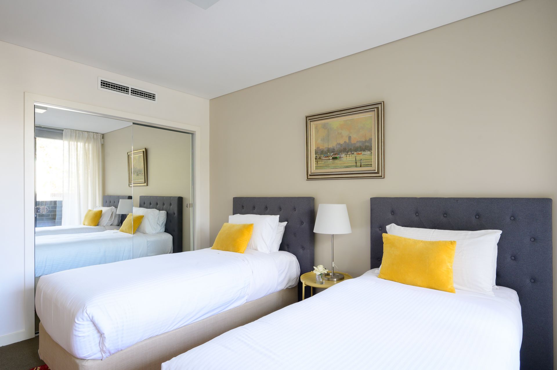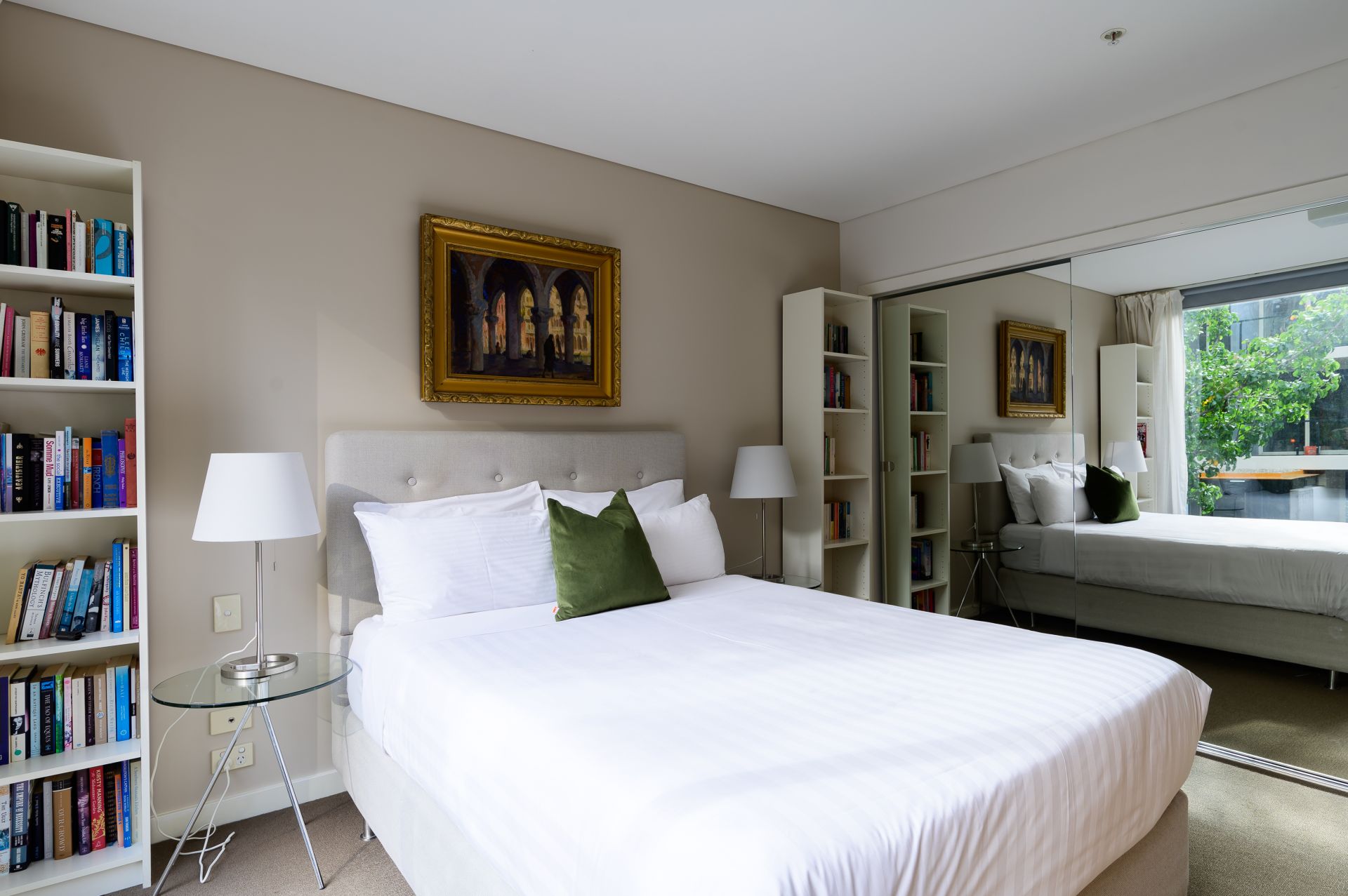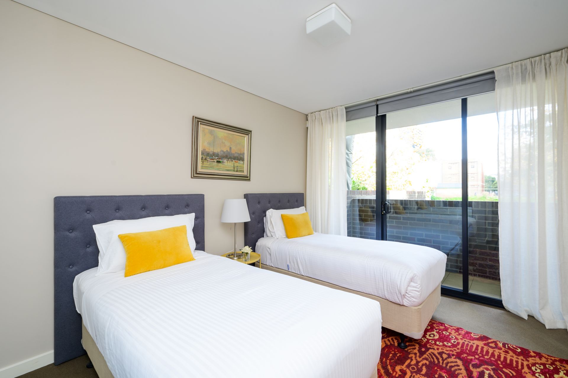 Master bedroom with queen sized bed, spacious built-in robes and sparkling ensuite bathroom. Generous sized second bedroom with a split double bed (2x singles or 1x double), built-in robes with direct access to balcony. Central bathroom and separate laundry including washing machine/dryer.
