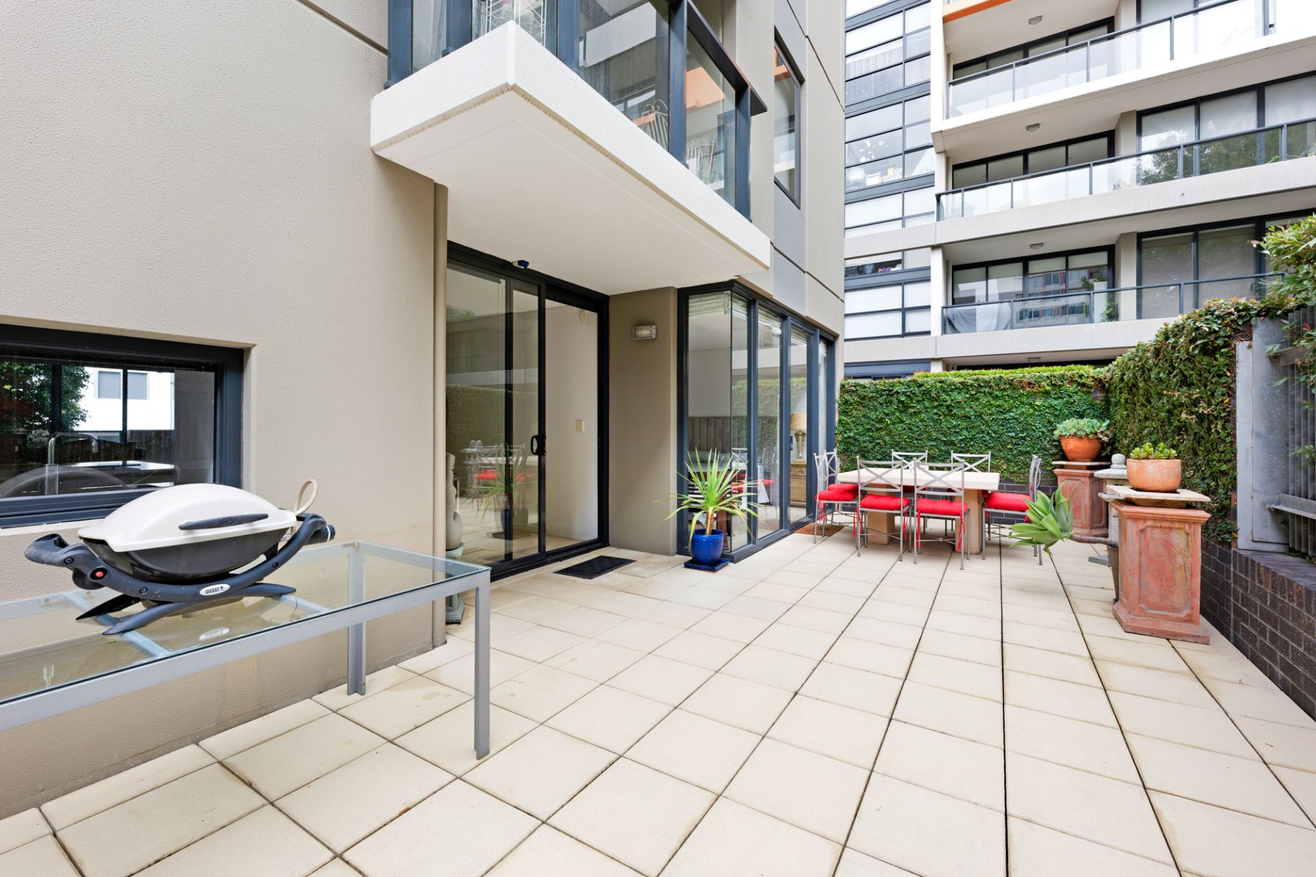 Master bedroom with spacious built-in robes, sparkling ensuite bathroom, good sized second bedroom with direct access to large courtyard. Central bathroom with European laundry including washing machine/dryer.