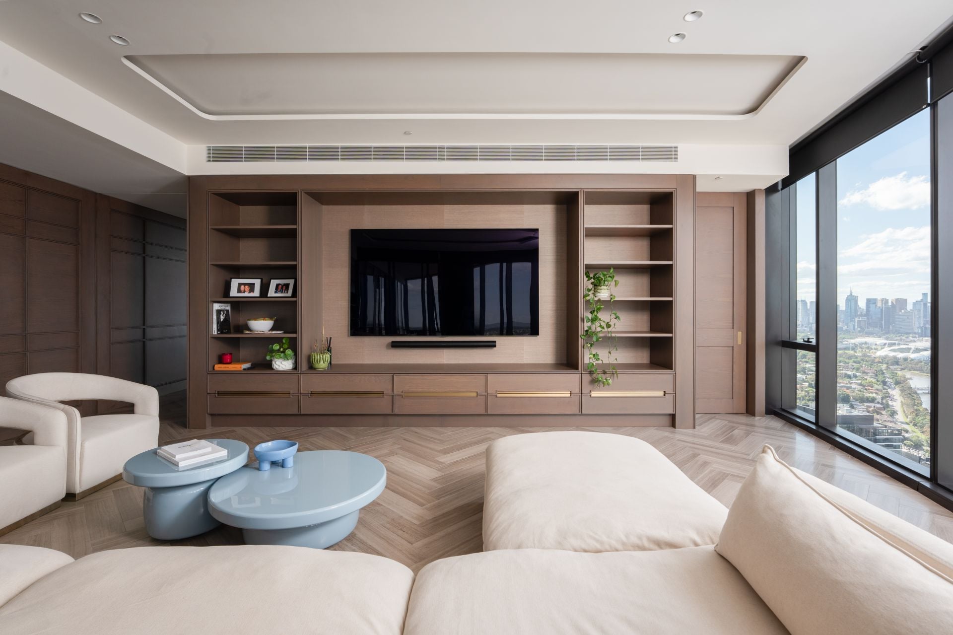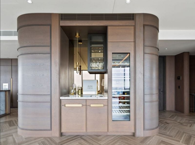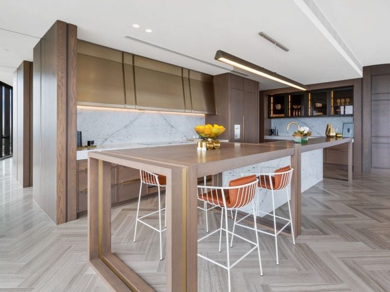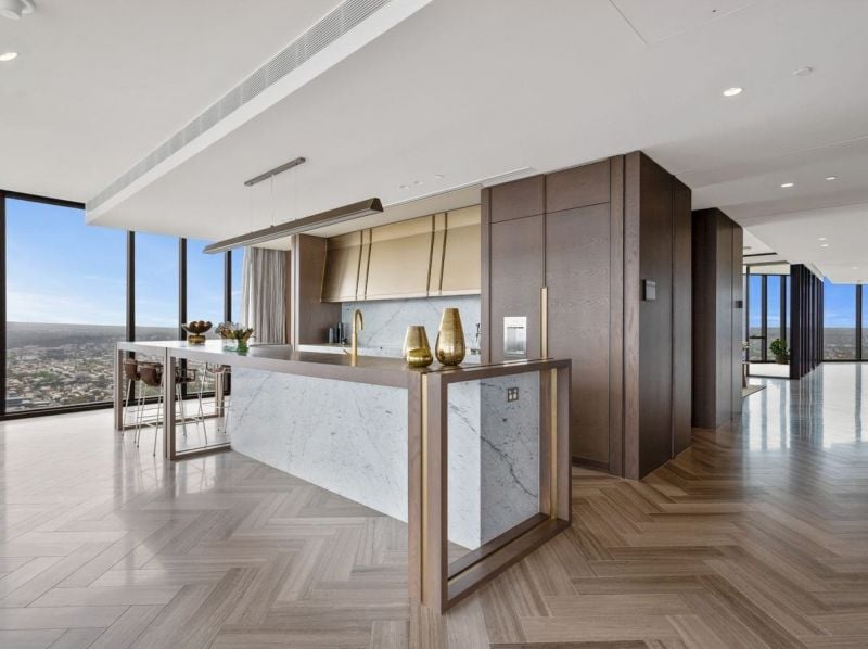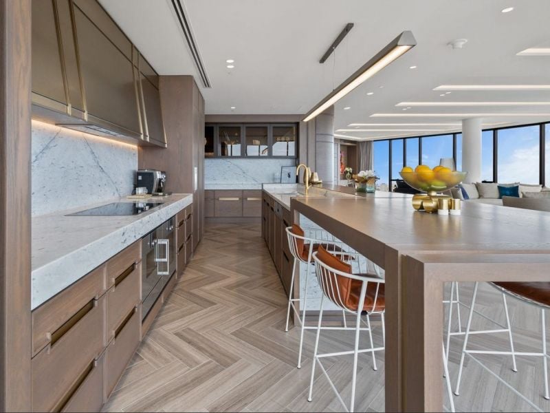 The heart of the home is a chef’s kitchen of exceptional caliber, featuring bespoke natural stone, a full suite of Gaggenau appliances, and concealed joinery, seamlessly combining performance and style. Expansive open plan living and dining areas provide the perfect setting for entertaining or relaxing, enhanced by European stone flooring, brushed gold accents, and integrated architectural lighting.