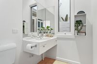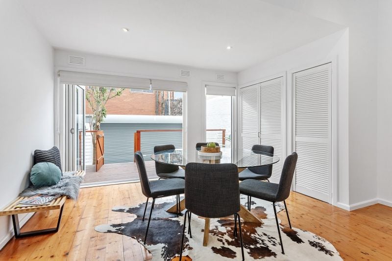 The updated kitchen with gas cooking and stainless-steel finishes flows through to an east-facing dining zone filled with natural light. Bi-fold doors open onto a decked alfresco area and private rear courtyard, with laneway access and the option for off-street parking (for a small car).