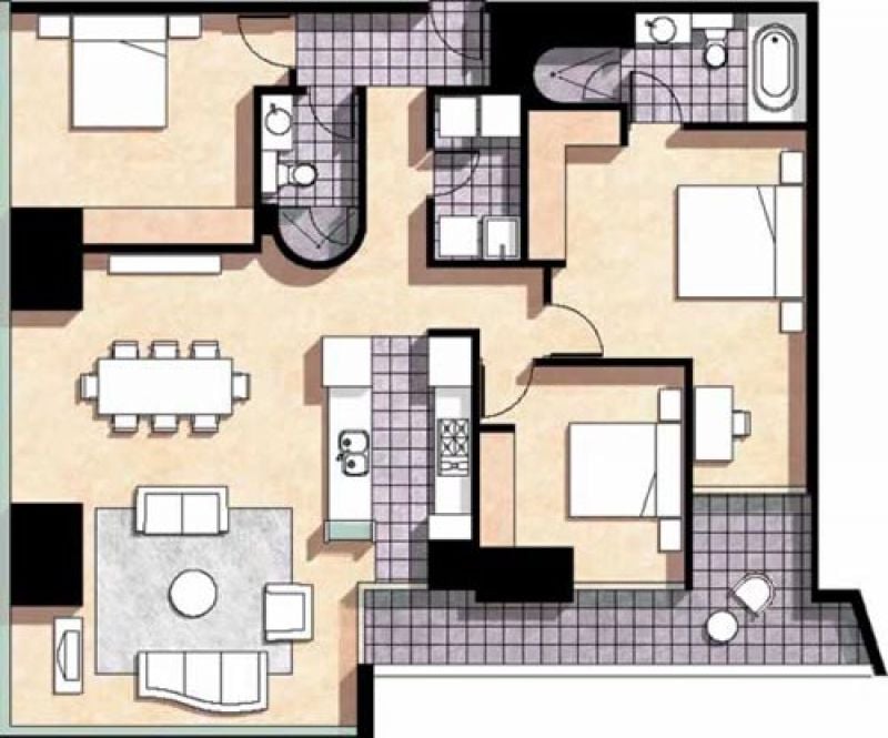 Perched on the 42nd floor of Melbourne’s iconic Eureka Tower, this newly enhanced three-bedroom residence offers a fusion of luxury and contemporary living over 129 square metres. Each of the three spacious double bedrooms is appointed with built-in robes, while the master suite is elevated by an ensuite featuring a separate shower and indulgent bath. A second main bathroom and separate laundry provide added convenience.