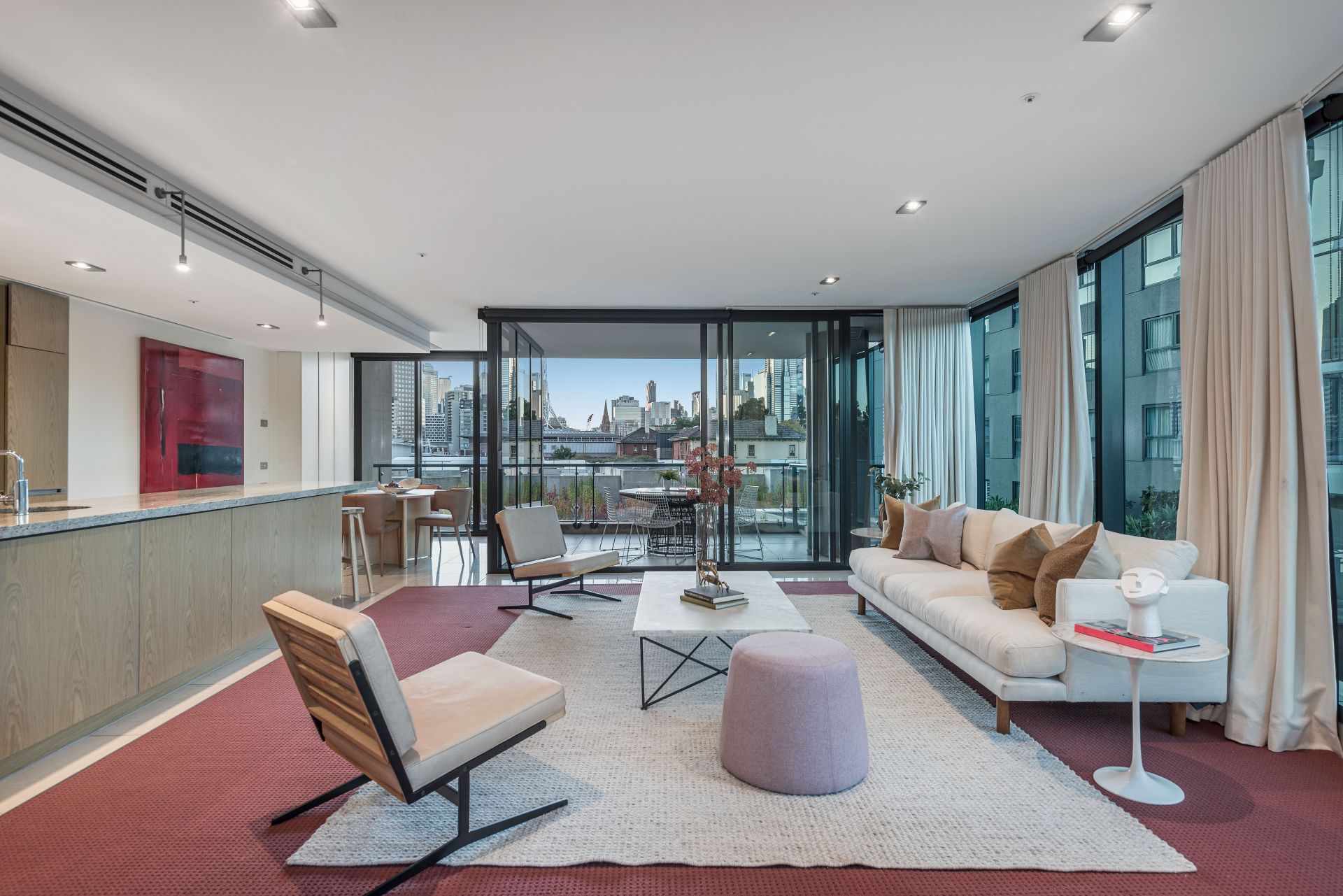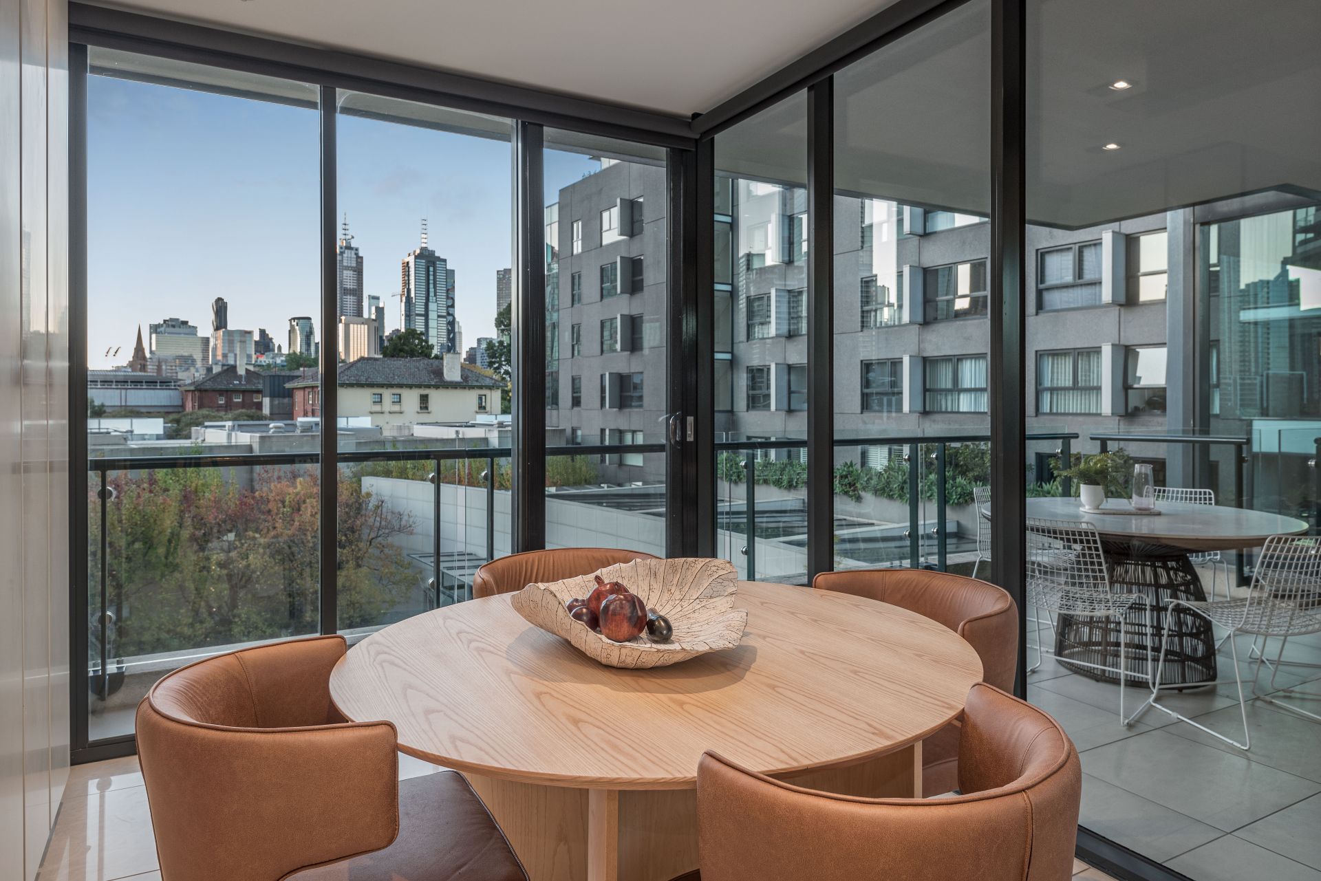 Light and space come together in perfect harmony at this luxurious and light-filled apartment in The Melburnian on Melbourne's grandest leafy avenue.