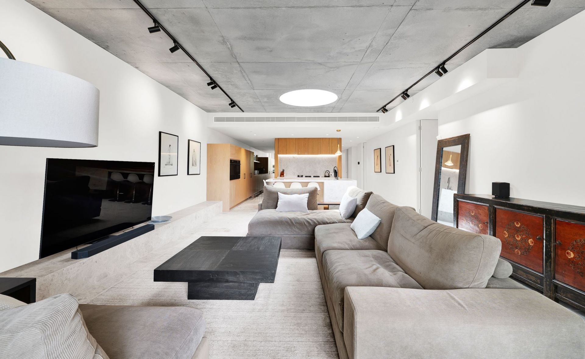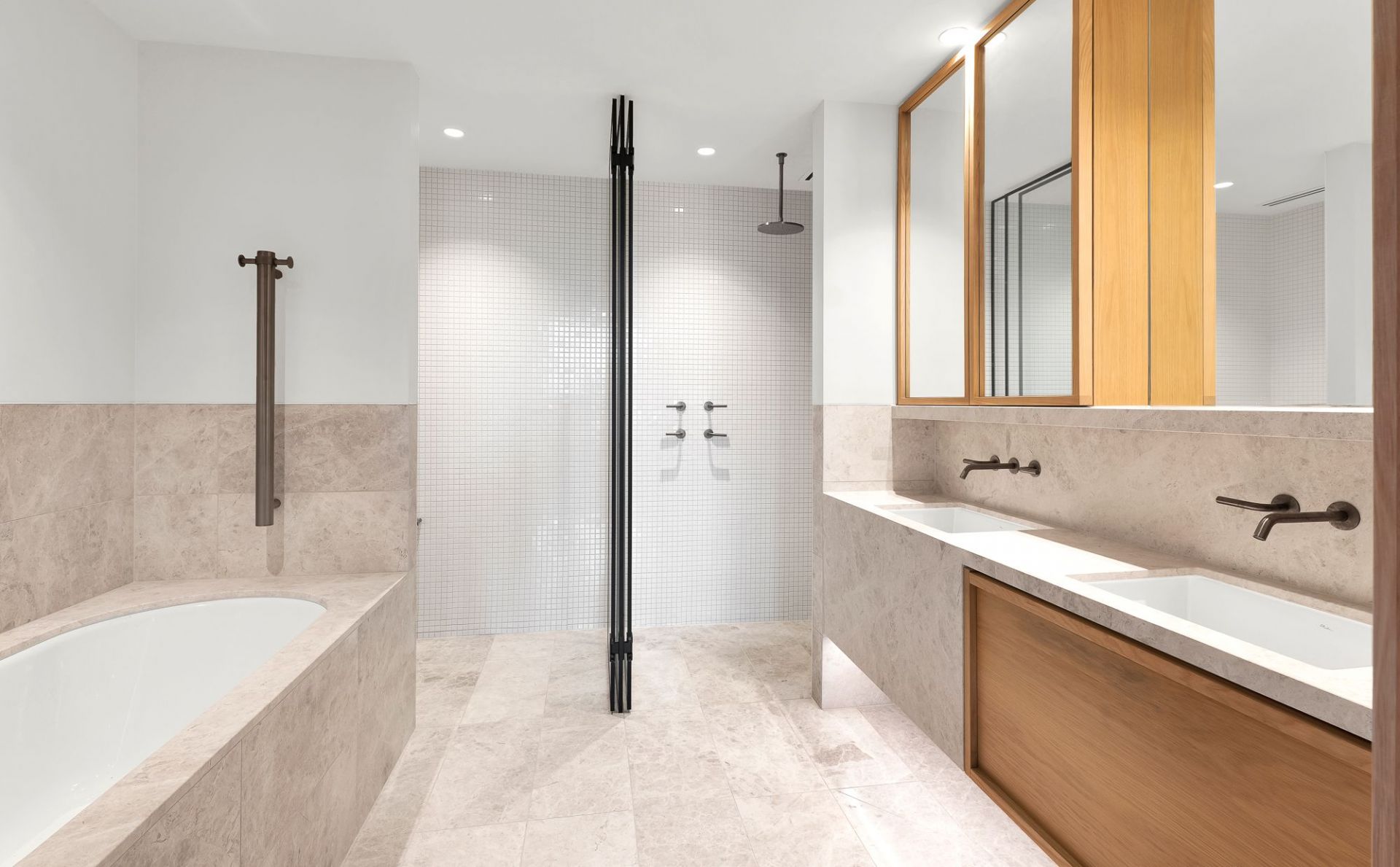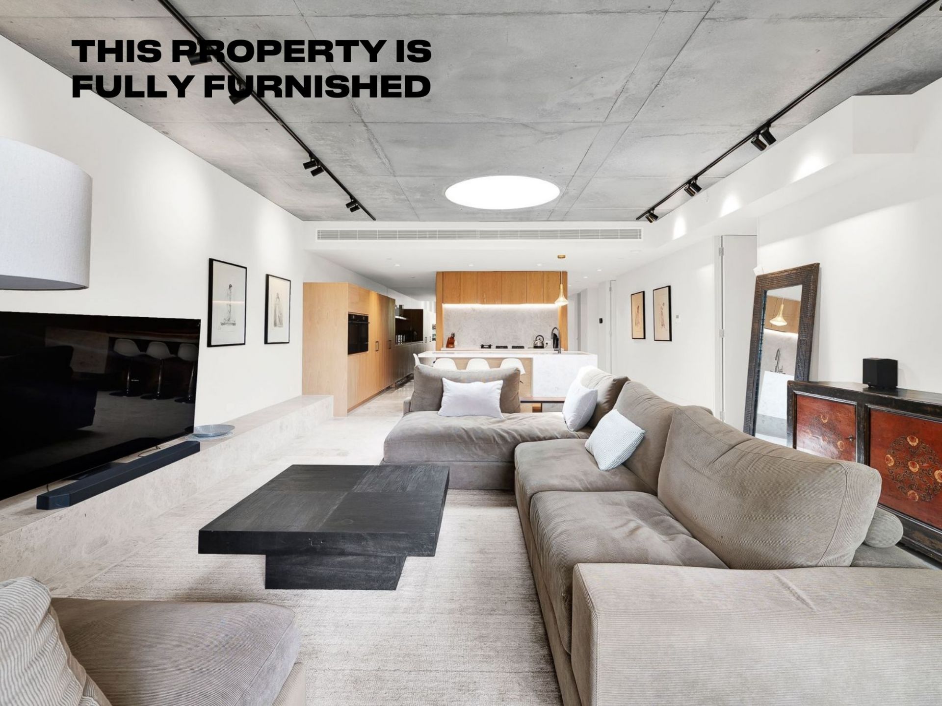 Further features to this beautiful apartment include generous proportions, oak floors, floor-to-ceiling windows and a 7-star average NatHERS energy rating merge with an enduring materiality that adds layers of richness and elegance to the architecture, with a palette of basalt stone, marble, concrete, warm metals and neutral brick. The luxurious bathrooms feature asymmetrical stone, timber vanities and natural stone floors. Additional features include double glazing, excellent storage and two side by side car parks. High end modern furnishings throughout.