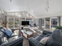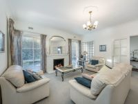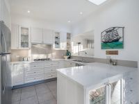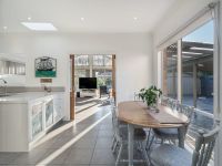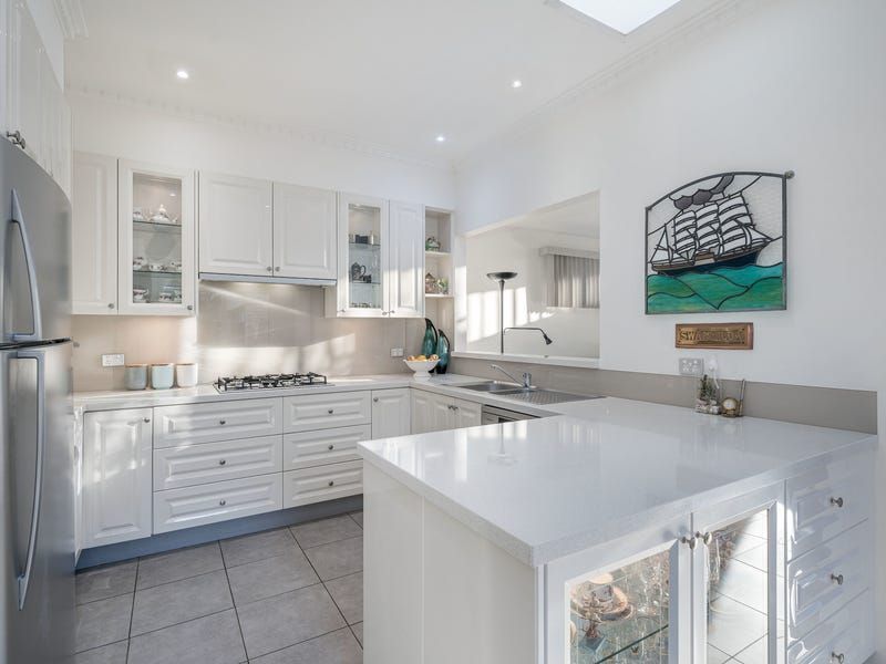 Immaculately presented and eternally timeless, the home's fantastic floor plan leads through a wide and bright entry to three generous bedrooms, each with built-in robes, including the oversized north-facing main, with a walk-in robe and a large ensuite bathroom. Two spacious living areas include the formal lounge with a wood-burning open fireplace leading to the dining area and the open-plan family domain to the rear, where high-raked ceilings emphasise extraordinary scale and light. At the heart of the home, the central kitchen is designed to entertain, blending modern functionality and elegance with stone countertops and electric Fisher & Paykel double oven & Bosch gas cooktop, highlighted by a brand-new Westinghouse dishwasher.