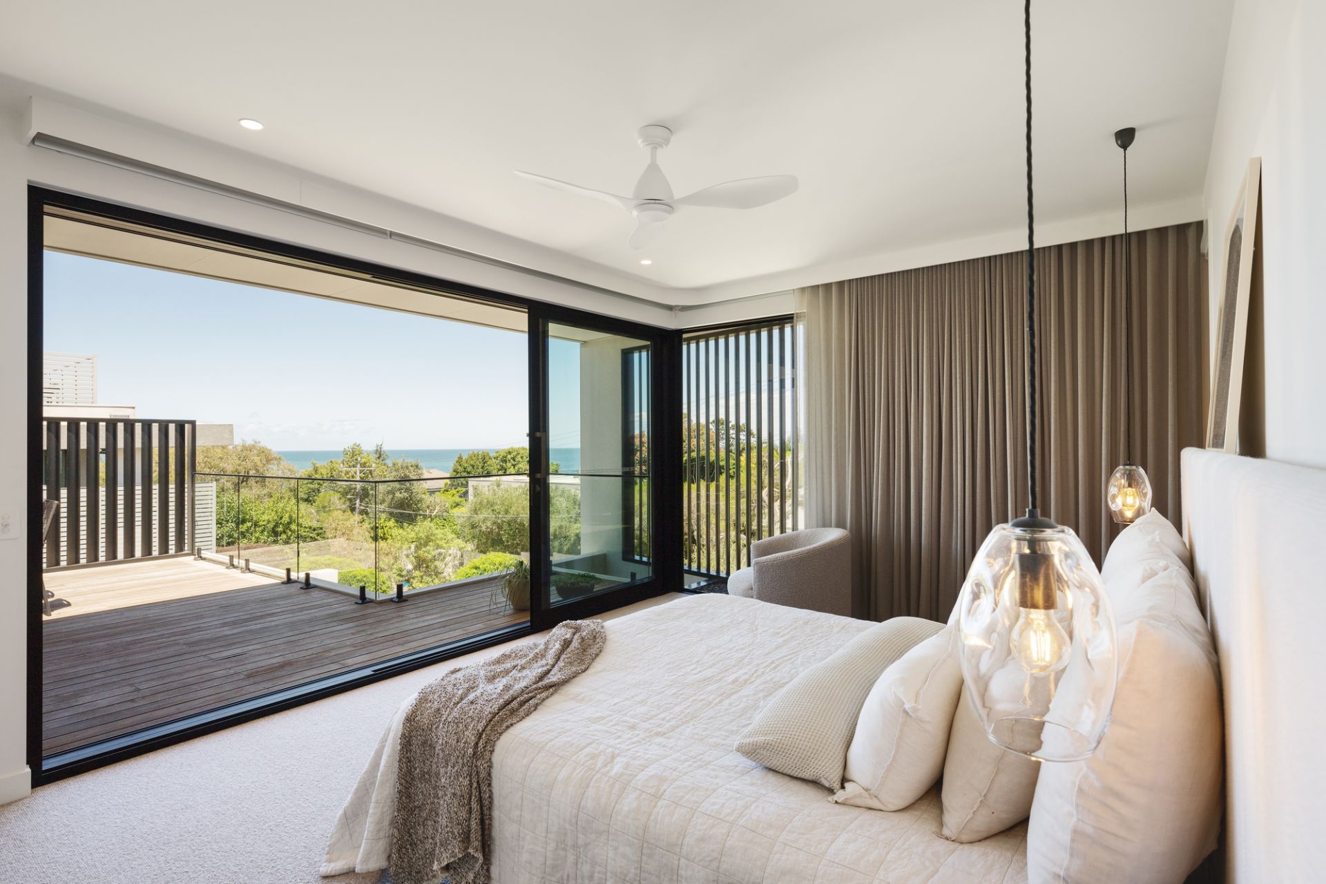 Set high above the bay, this remarkable 5-bedroom, 5-bathroom residence is a triumph of coastal elegance, seamlessly blending architectural excellence with the natural beauty of its surroundings. Designed by the renowned Kiril Architects, the striking timber-clad façade creates an unforgettable first impression, while the interiors embody a harmonious balance of sophistication and comfort. The grand main suite, complete with a private deck and sweeping bay vistas, is accompanied by three additional deluxe bedroom suites on the upper level and a guest retreat on the main floor, offering a walk-in robe and flawless ensuite. At the heart of the home, the quartz kitchen, fitted with state-of-the-art Smeg appliances and a butler’s pantry, exemplifies both style and functionality.