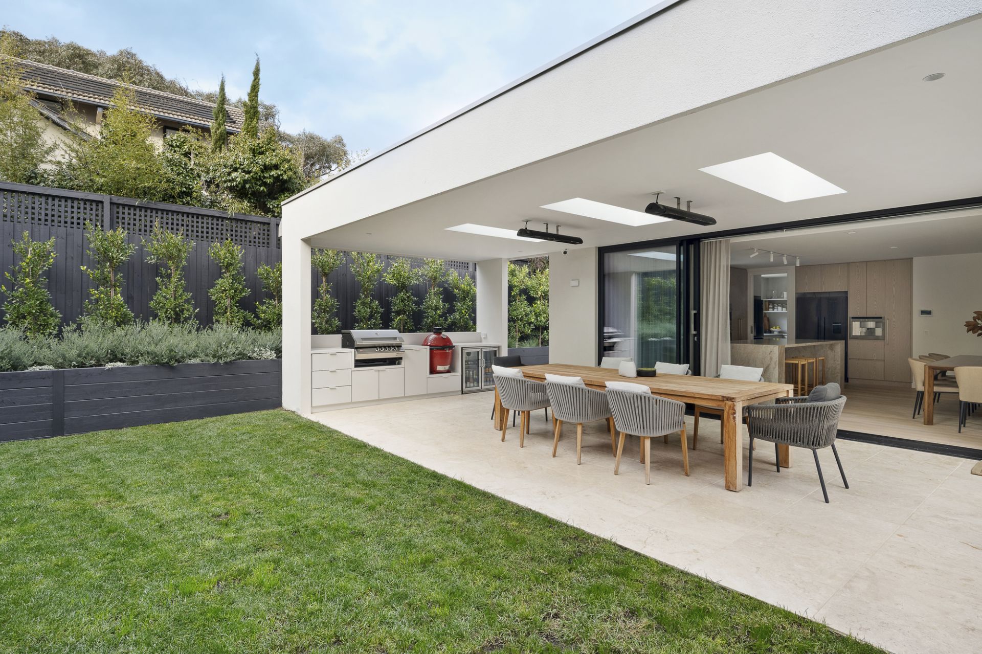 The outdoor spaces are equally impressive, with a north-facing alfresco pavilion featuring a mains gas barbecue, bar fridges, and heat strips, perfectly paired with a solar-heated pool surrounded by travertine terraces. Finely crafted details, including oak floors, sliding stacker doors, and auto blinds in select rooms, add to the home’s refined appeal, while zoned climate control ensures comfort in every season. Modern conveniences such as keyless entry, CCTV security, a double garage, and auto gates provide practicality and peace of mind. Positioned between the beach and the tranquility of Donald MacDonald Reserve, and just moments from Ricketts Point, this residence is not only a home but an enduring expression of coastal prestige.