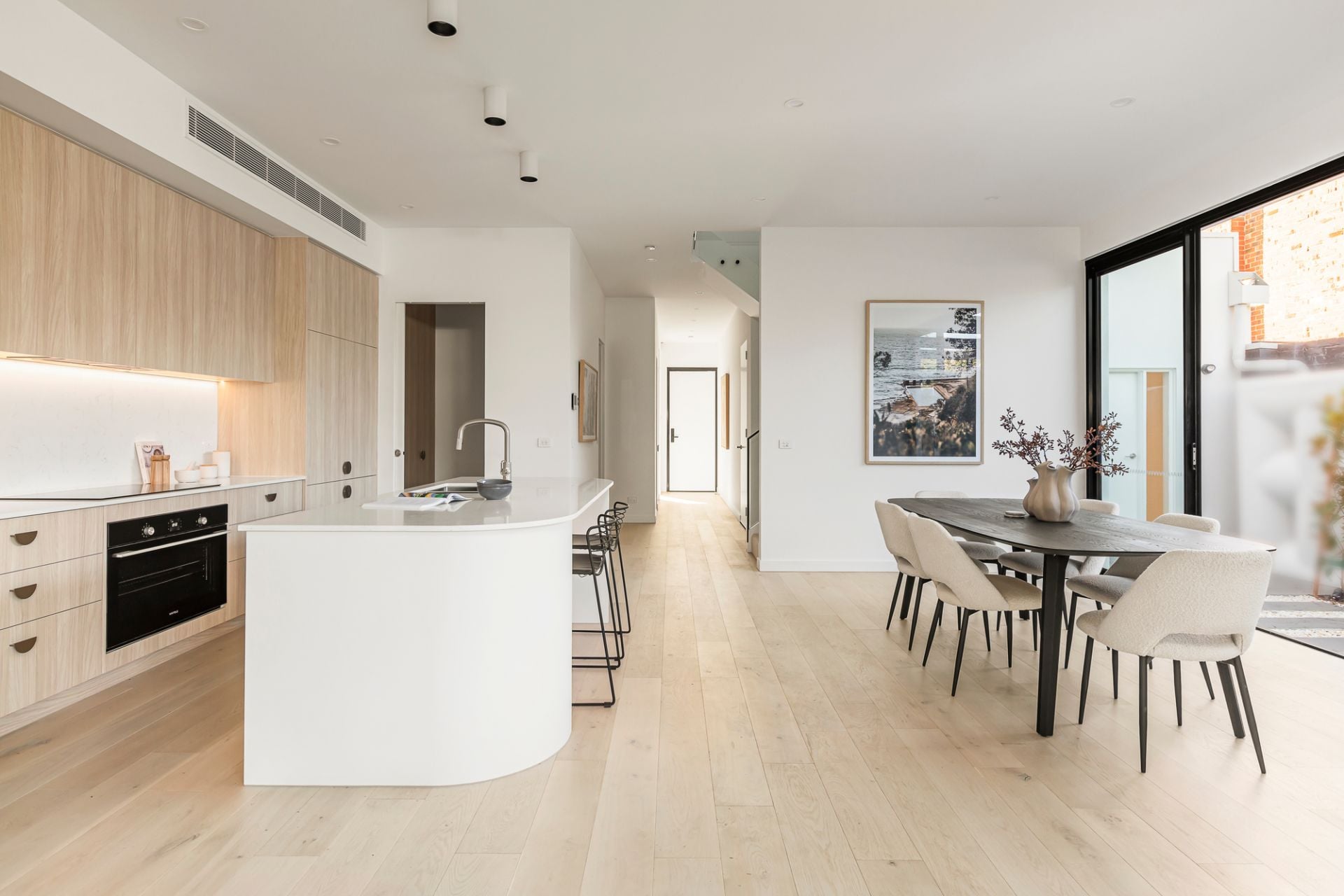 Architecturally designed, constructed by an award-winning builder, and owning a prominent position within one of Beaumaris’ most exclusive cul-de-sacs, this newly completed four-bedroom, three-bathroom plus study home presents outstanding precision, tailored outdoor living, and a stunning sense of permanence. Introduced by low-maintenance landscaping and a façade of subtle contrast, its interior delivers a refined vision of modern coastal living, defined by generous proportions, exceptional flow, and natural textures that catch the light at every turn.
