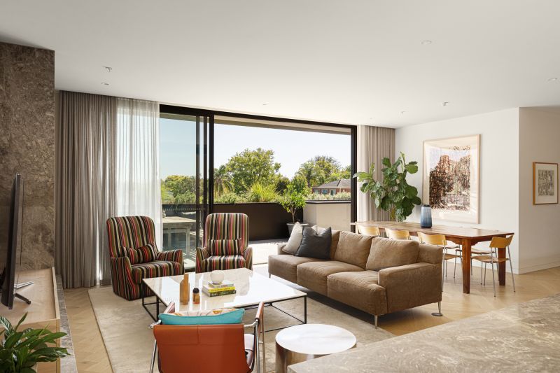 Showcasing exquisite finishes and never-ending exclusive views with only one shared wall, your opportunity has arrived to secure a premium base in the heart of Brighton, on the edge of North Brighton Station, the Golden Mile beach and with a choice of celebrated dining and retail options on your doorstep. Positioned on the top floor and wrapped in floor-to-ceiling glass, this exceptional apartment spoils you with north-facing sunlight, captured through the open-plan living and dining areas and private covered balcony.