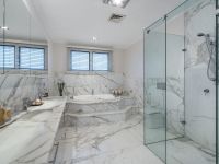 With its own private terrace and treetop vistas, the vast main bedroom domain features a walk-in wardrobe and hotel-style marble ensuite with sunken spa bath. The second bedroom also has an ensuite, while the third and fourth bedrooms are served by the central marble bathroom.