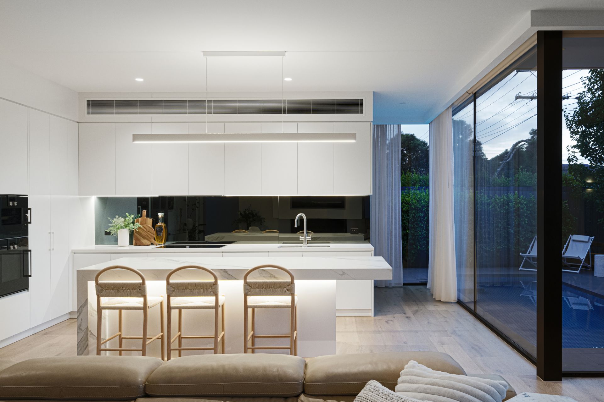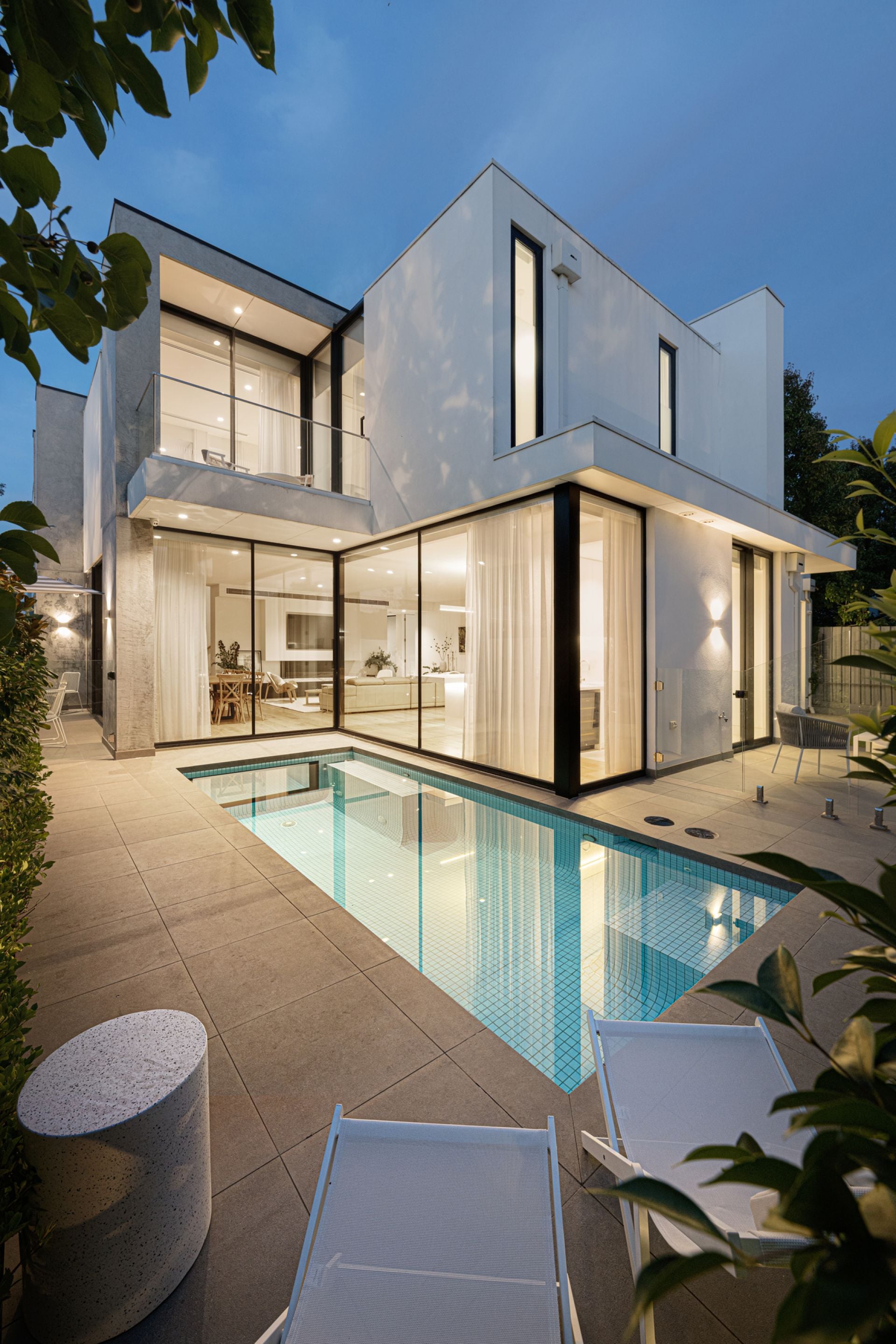 Architectural refinement finds its most compelling expression in this exceptional five-bedroom, five-bathroom residence, unfolding with deliberate grandeur across three meticulously designed, lift-connected levels. Positioned within a blue-chip beachside pocket between the foreshore and the open spaces of Elsternwick Park, its poolside setting is both private and expansive, enhancing a domain that prioritises scale, light and an unbreakable connection to its surroundings.