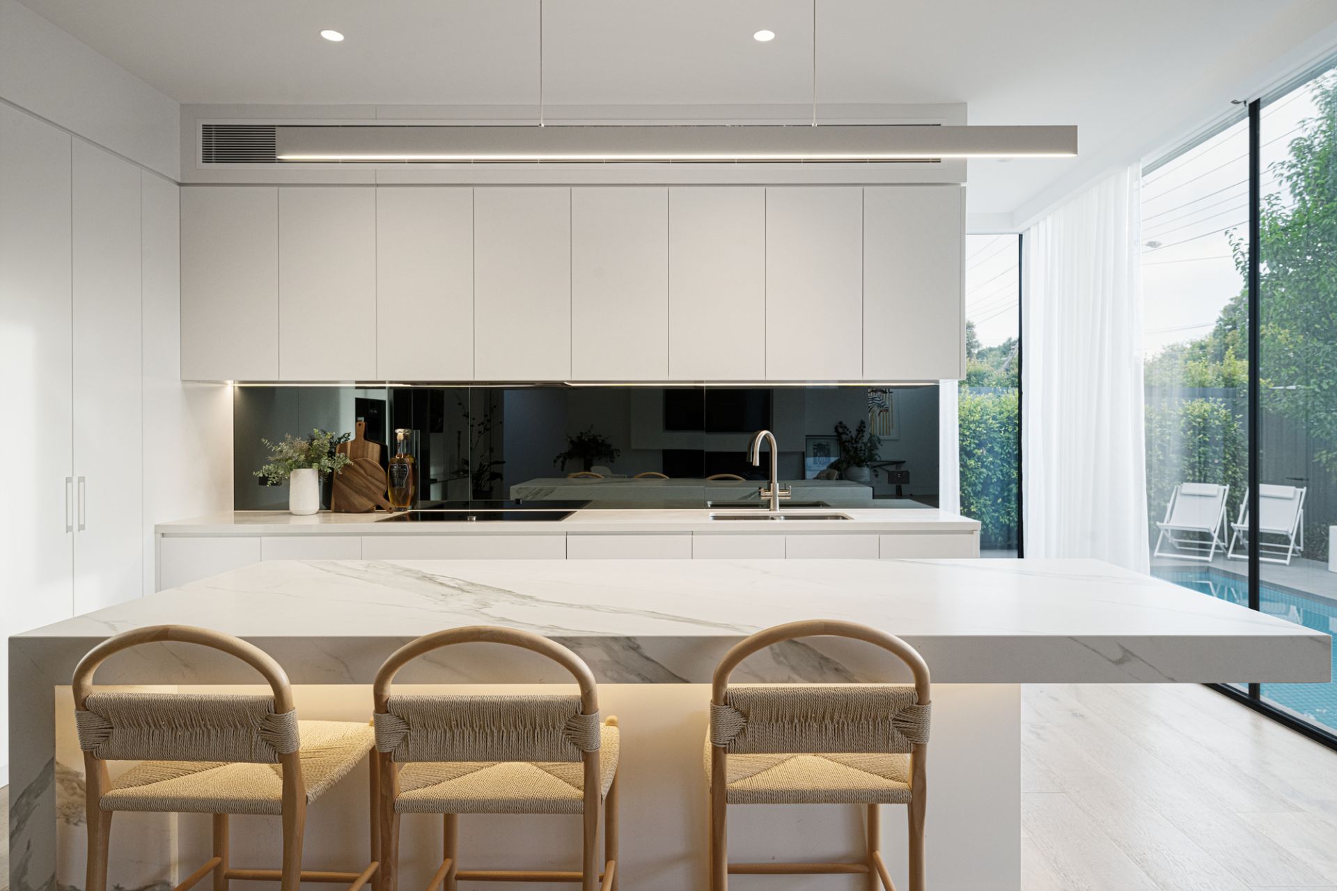 The lower level is an entertainer’s sanctuary, featuring a display wine cellar, a fully-appointed home theatre, and a dedicated gym with a pool-viewing window. A triple secure basement garage with a turntable, zoned reverse-cycle heating and cooling, 10,000L underground water storage, video intercom, and alarm system underscore the home’s unwavering commitment to excellence, moments from Martin Street Village, city-bound trains and trams, leading schools, including Star of the Sea, and the bay.