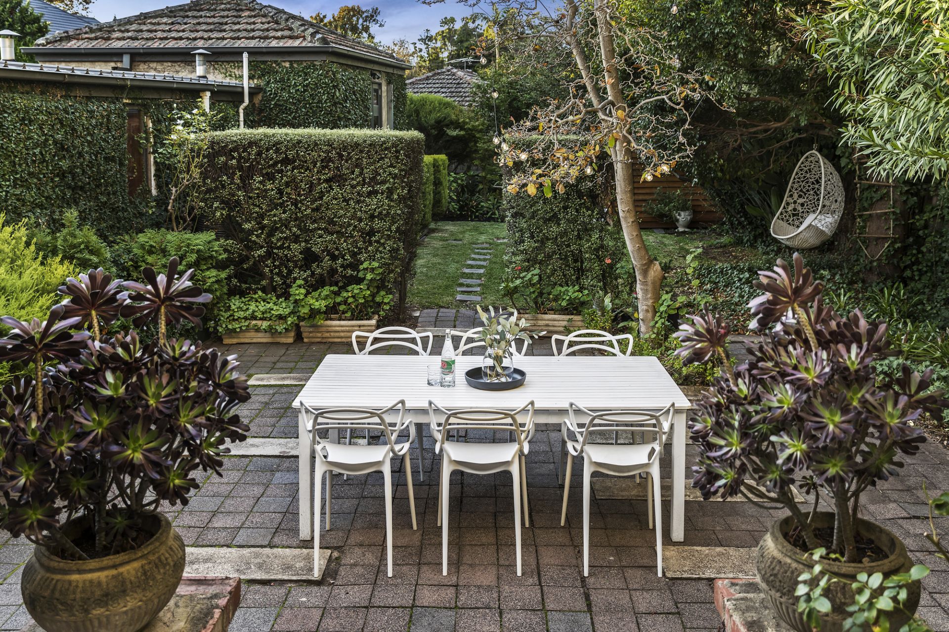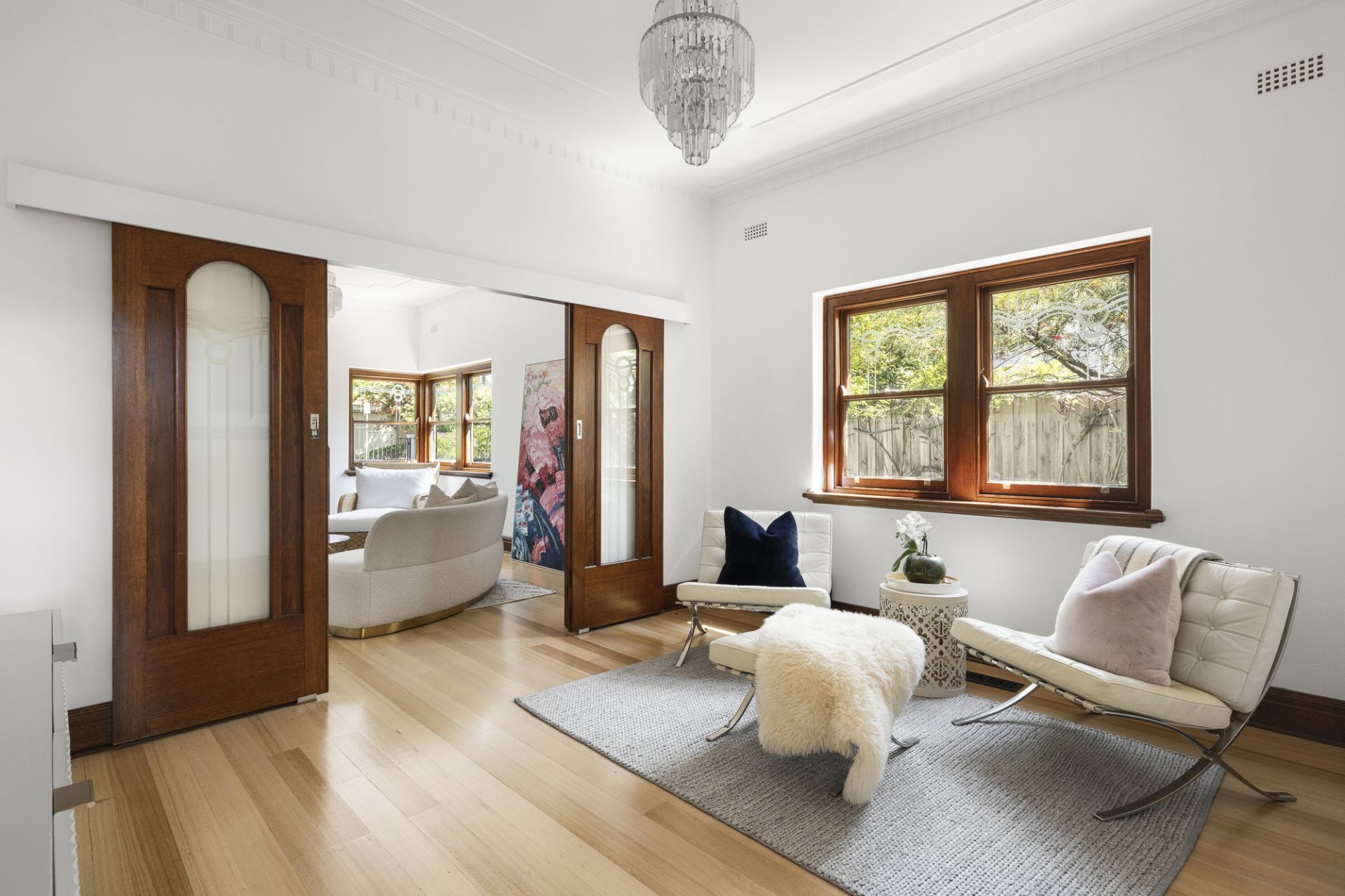 Rich with the warmth and character so prevalent across its prestige cul-de-sac, the alluring abode hides among lush, manicured greenery, with leafy outlooks enlivening an exceptional interior. Classic details in timber door and window frames, etched-glass doors, hardwood floors, ornate ceilings, and a feature fireplace complement countless modern luxuries, while accommodation proves ideal for family life. Two large, lower bedrooms and a main bathroom with a bathtub accompany an upper master with its own ensuite, while at the block’s rear, a vast, standalone studio sees a tidy bathroom, sun-soaked fourth bedroom/office, expansive retreat, and kitchen cater brilliantly for home-based professionals, visiting family, or teenagers needing their own space. Providing abundant room to both unwind and entertain, formal living and dining zones introduce an open family/meals space and central kitchen primed for the passionate cook, together spilling into a north-facing yard perfect for a blue-sky barbecue among thriving plant life.