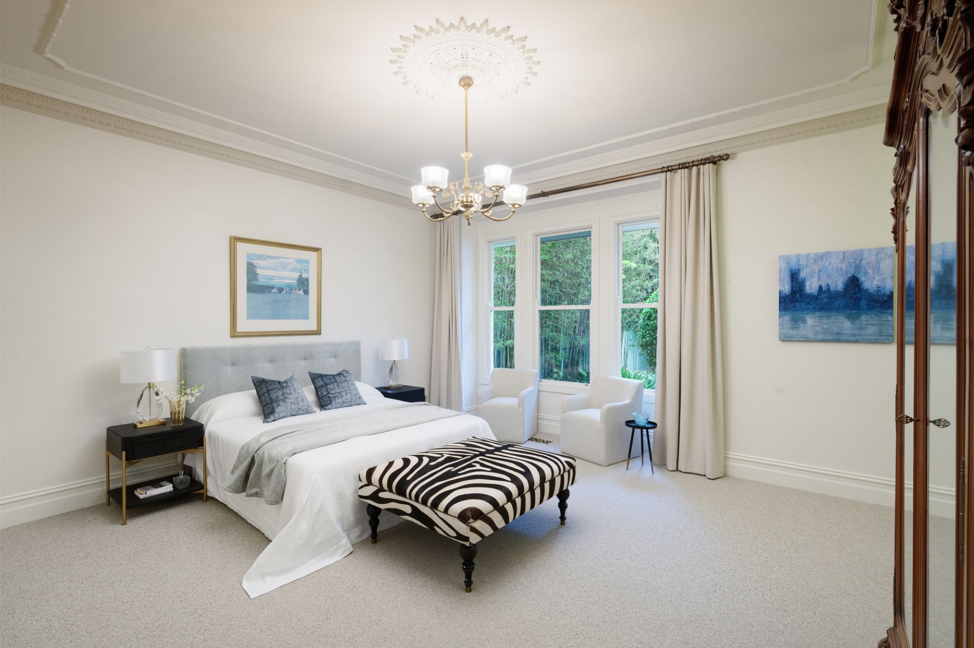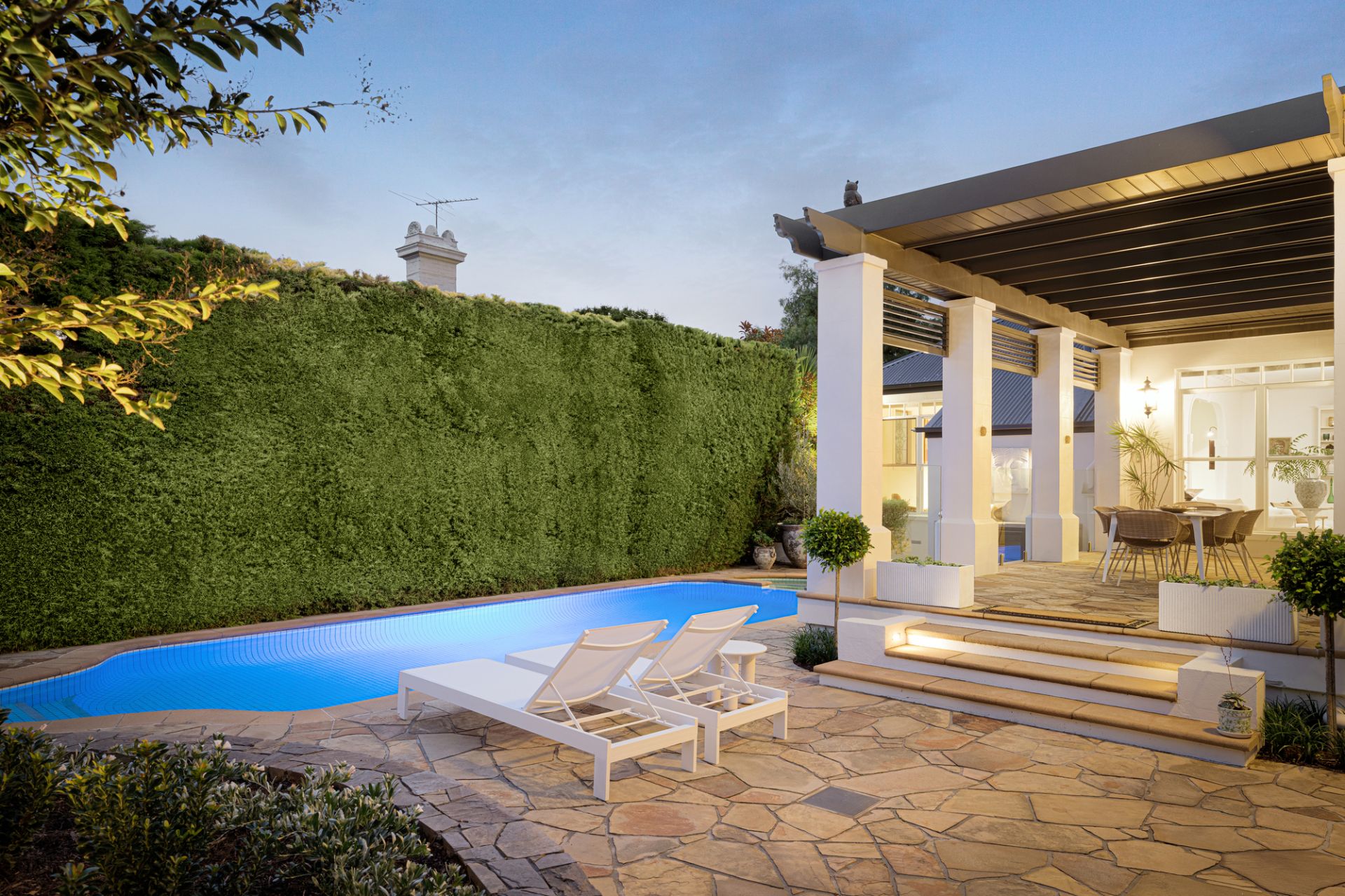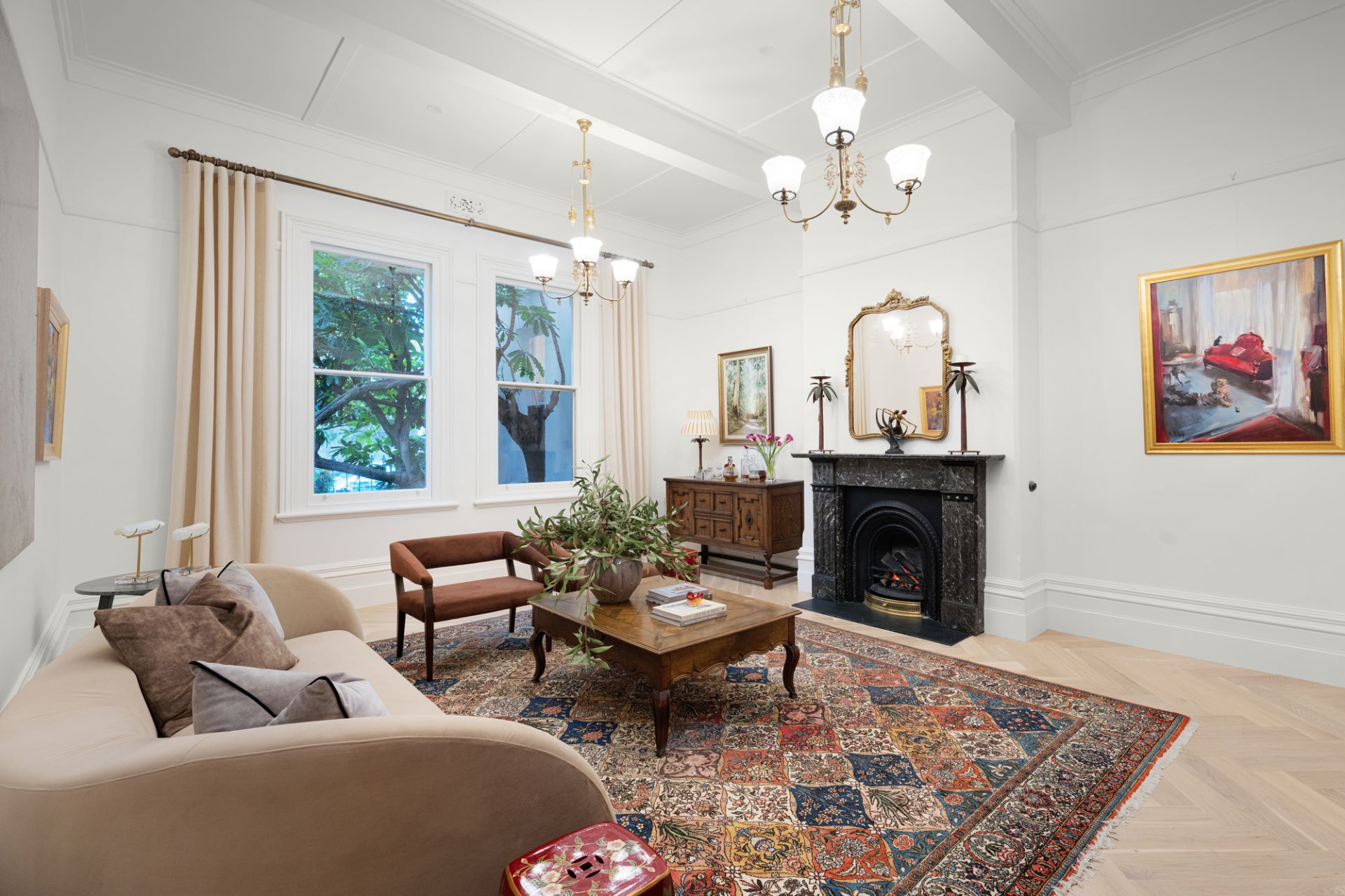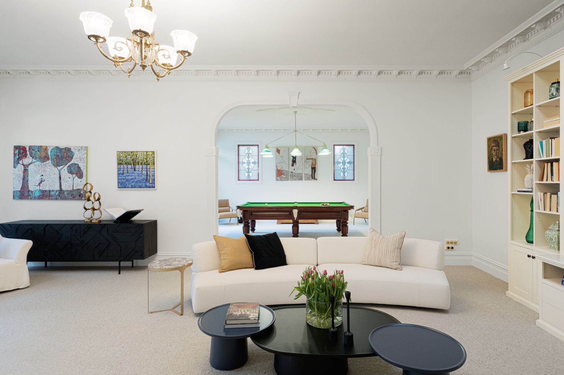 With uninterrupted frontage to Wilson Reserve, the home’s stance is made memorable by wrought-iron fences and lacework, canopies of verdure, a tessellated-tile veranda, and prominent corner position, while inside, period grace and modern luxe seamlessly entwine. Herringbone parquetry, a grand archway, and towering, ornate ceiling frame an inviting hallway, winding to introduce a spacious dining room en route to exceptional living/hospitality domain. Occupying their own distinct wing, expansive lounge and rumpus areas heighten hosting capabilities, while in a wonderfully open main section, a first-class kitchen and wine room flank a family/meals conservatory soaking in delightful, all-day sun. Usable across the year, a louvre-top alfresco steps into a sun-soaked yard kept private by sculpted hedges, brilliant for a dip in the pool and barbecue surrounded by friends and family.