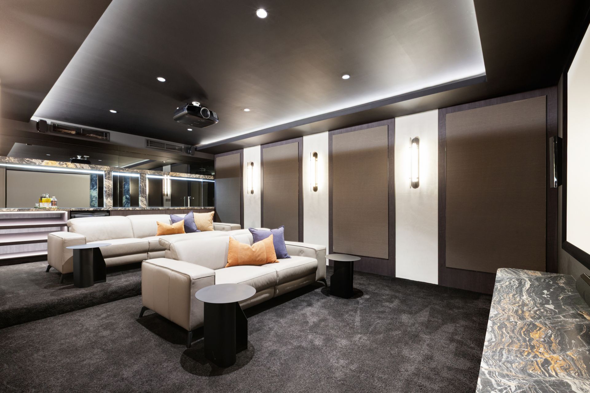 Backyard spaces come alive in warmer months, comprising a plumbed barbecue kitchen for Sundays with family and a private pool escape featuring a tanning ledge, outdoor shower, and stadium-sized outdoor TV to take advantage of summer sun. Giving the option to live on one level, a ground-floor guest room with a twin-basin ensuite, walk-in robe, and fitted dresser is the perfect complement to a top-floor master with a full-size dressing room, luxe ensuite with a soaker tub, and sweeping, arch-framed vistas. Ensuites and entire-wall robes enhance bedrooms three and four, while on a sumptuous basement level, resort-style features take the form of a fully equipped cinema room, mirrored gym/pilates studio, and steam room.