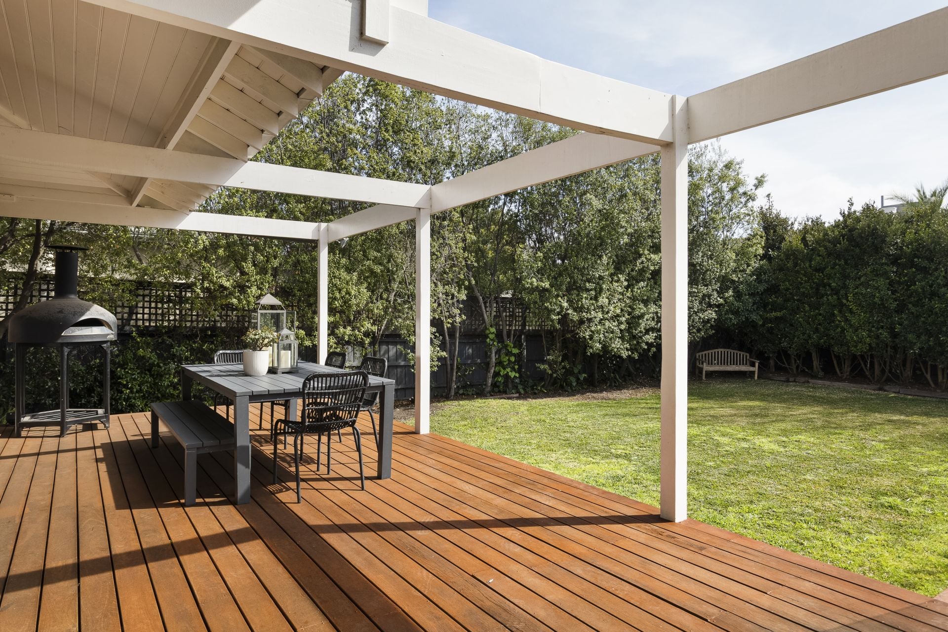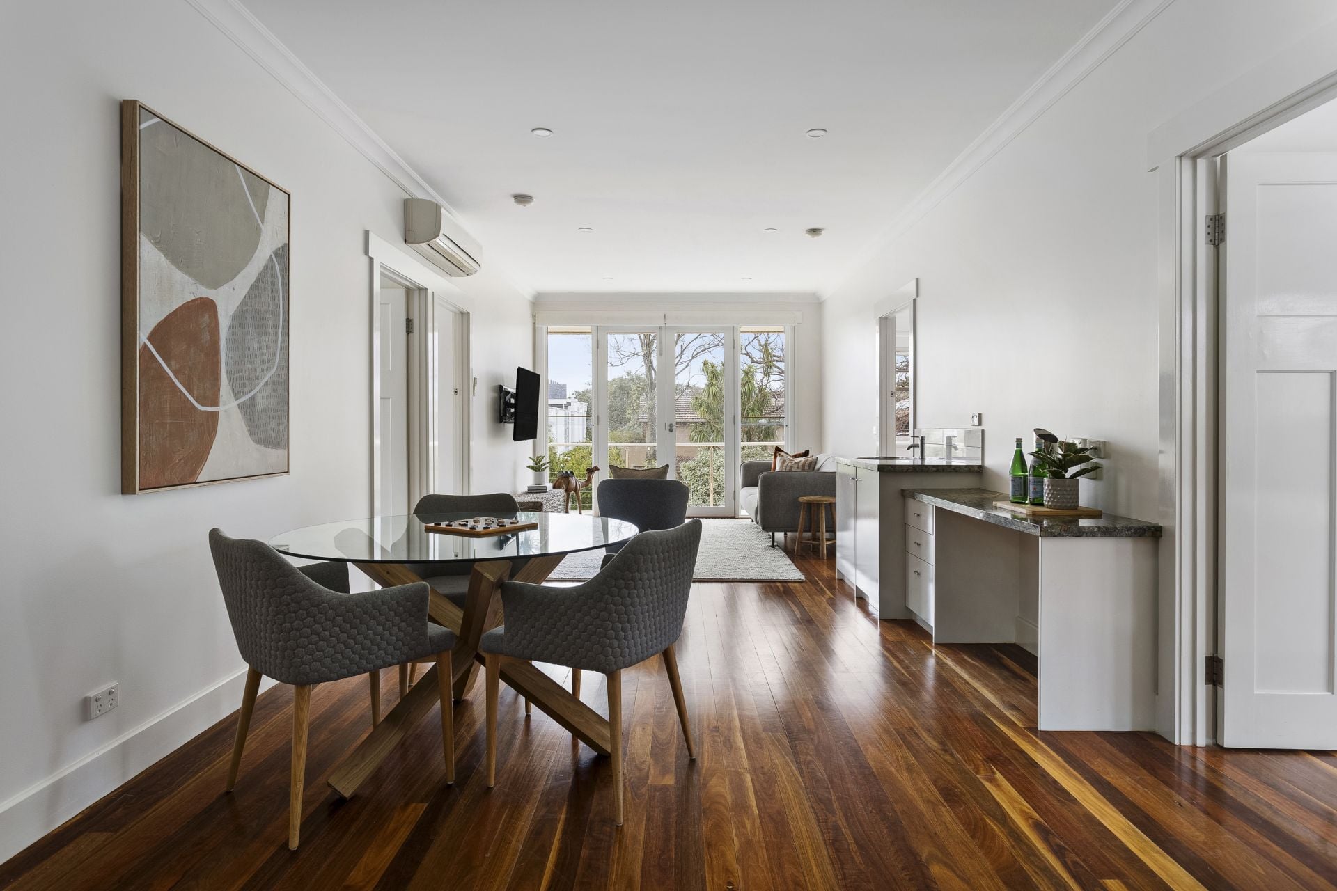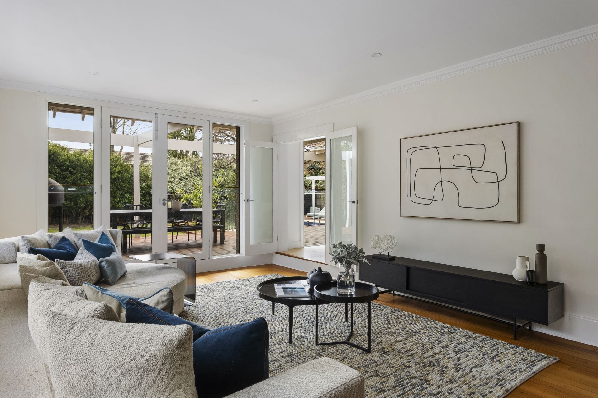 Outdoors, the estate’s 1,115sqm garden offers both play and repose. From here, the shoreline is only footsteps away—one of the few white-sand swimming beaches of the bay—and every day stretches towards the best of Brighton and beyond: leafy parklands, yacht clubs, acclaimed schools, and the boutiques and dining of Martin and Church Streets.