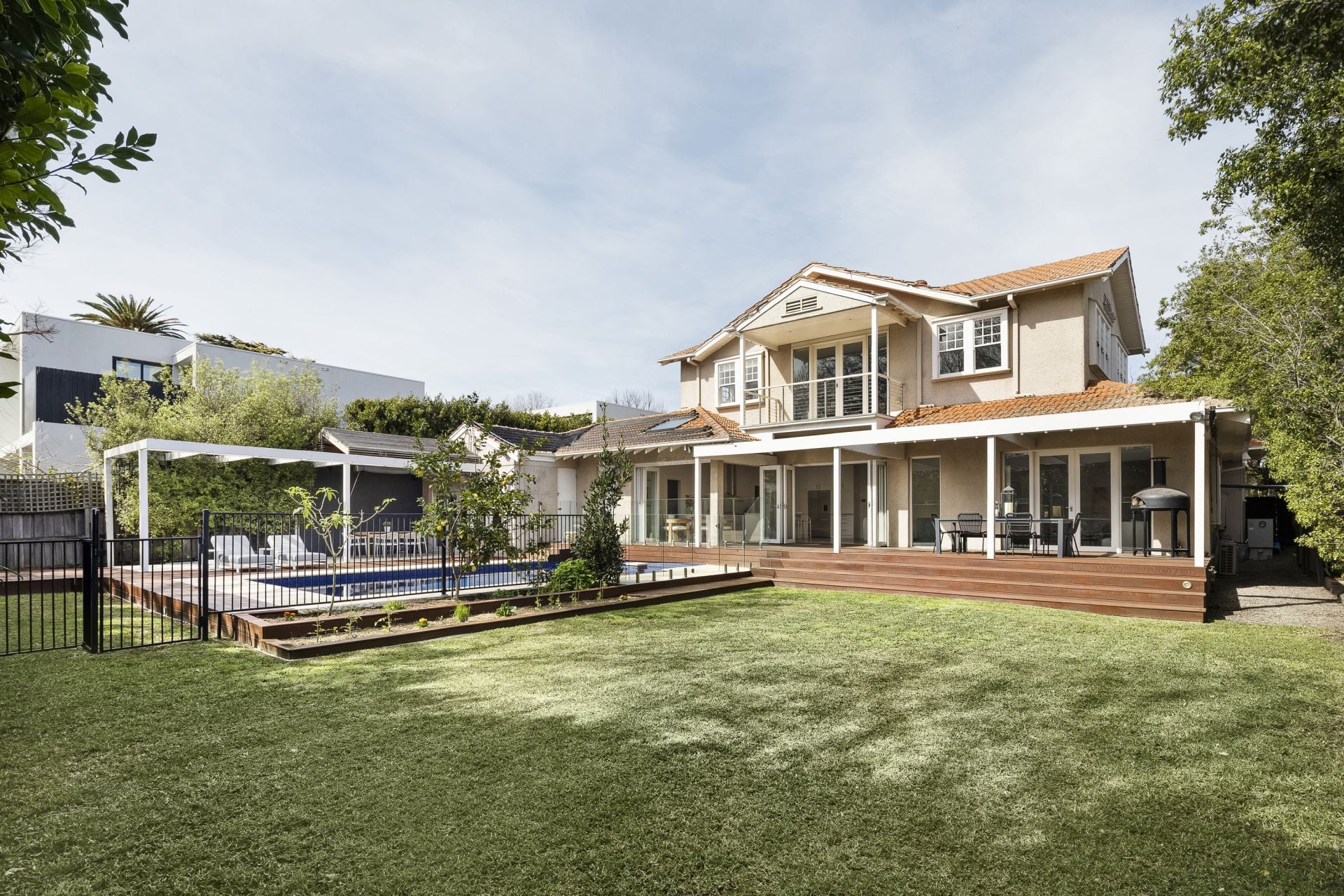 Across its five bedrooms and multiple living domains, Fairlie offers a home that adapts to the seasons of life: a place for children to grow, for teenagers to retreat, and for adults to entertain with ease. Spaces are generous yet deeply considered—whether it’s the private study, the upstairs retreat with its sunlit balcony, or the wine room that invites quiet indulgence.