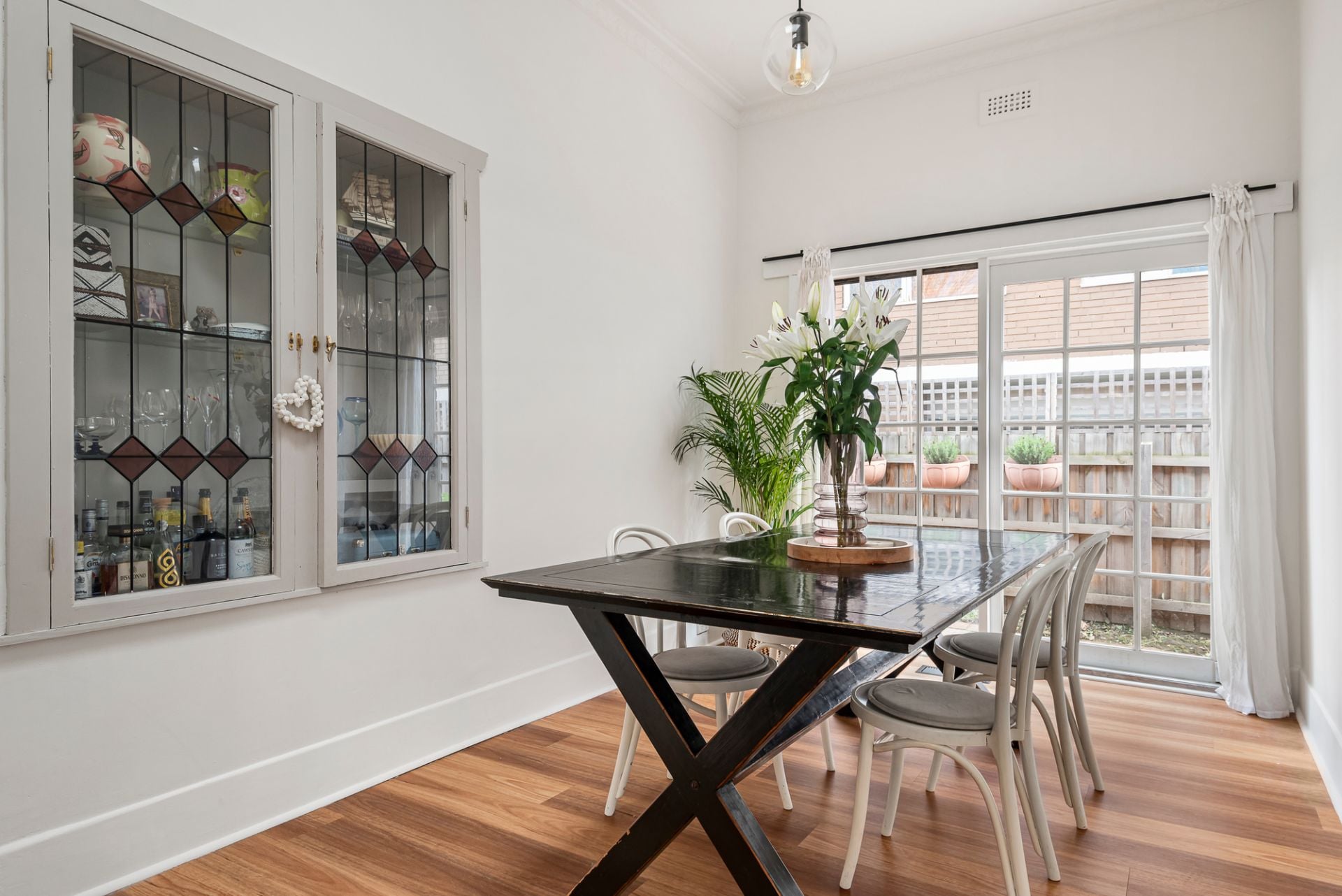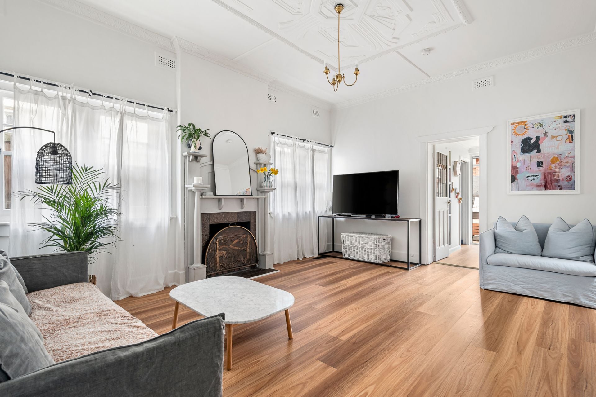 Thriving greenery and a classic Californian faade precede a tastefully refreshed interior, with elaborate ceilings and detailed fretwork among a range of charismatic, original details. With calming garden views gracing substantial main and guest rooms, four considerable bedrooms promise ample accommodation for families, with a generous fourth doubling as a stand-out lounge or professionals home workspace. With an open fire making for warm and cosy evenings come wintertime, broad family and dining spaces neighbour a quaint, storage-rich kitchen with gas-top cooker, while a completely private, low-maintenance yard offers a sun-splashed retreat for blue-sky barbecues surrounded by guests.