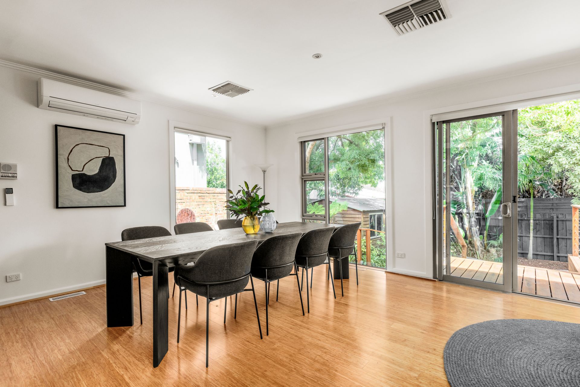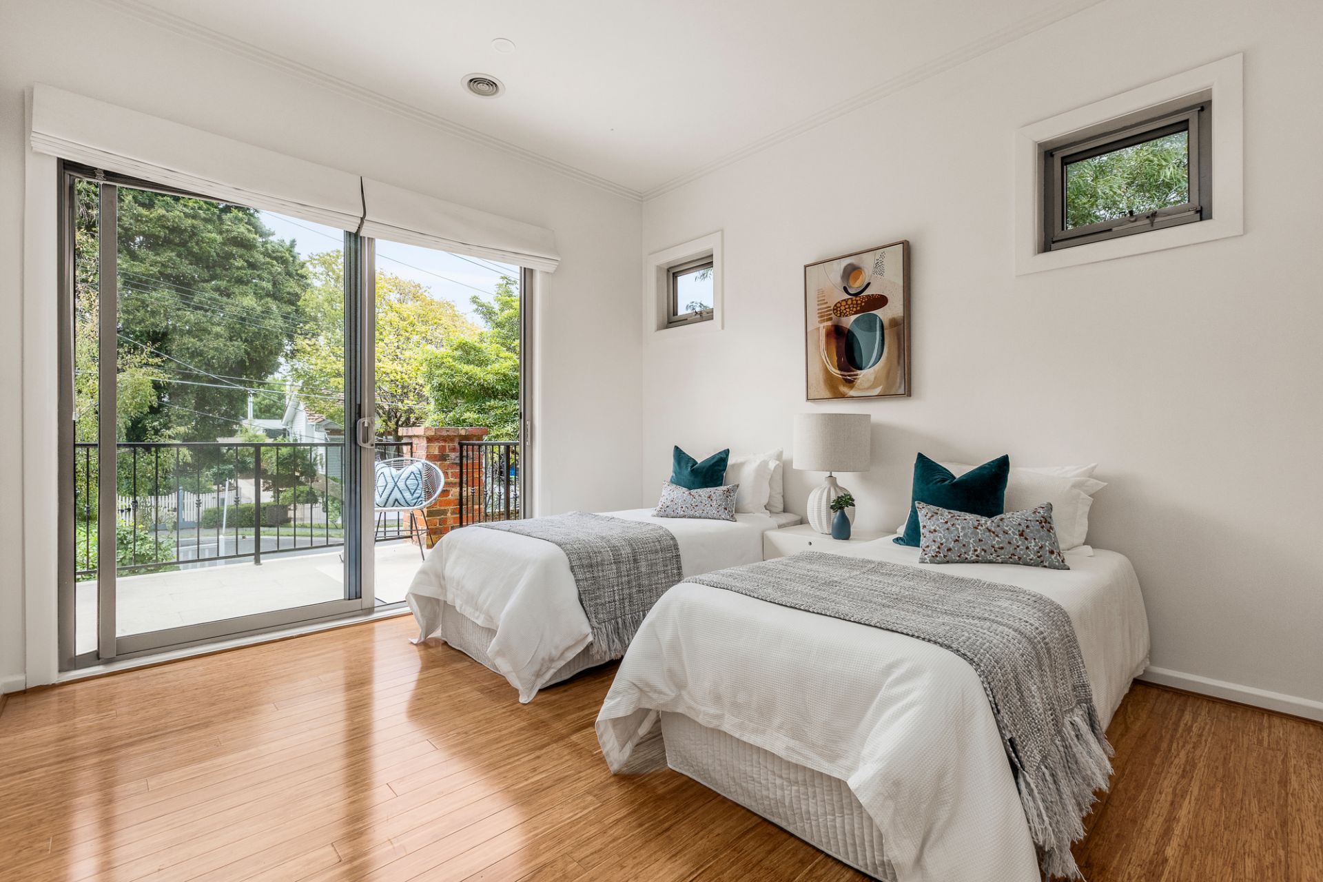 With its own ensuite and walk-in robe, a magnificent upstairs master is accompanied by three large, second-storey kids’ rooms, a modern central bathroom, and scenic eastern balcony, while a robe-lined fifth bedroom/lower bathroom pairing proves ideal for visiting family. Other highlights include an additional, sky-lit bathroom servicing entertaining areas, dual basins and a bathtub to both upstairs bathrooms, ducted heating, evaporative cooling, split-system heating/cooling, a full-size laundry, backyard shed, quiet side deck, driveway space for two cars comfortably, and zoning for acclaimed Hampton Primary/Sandringham College.