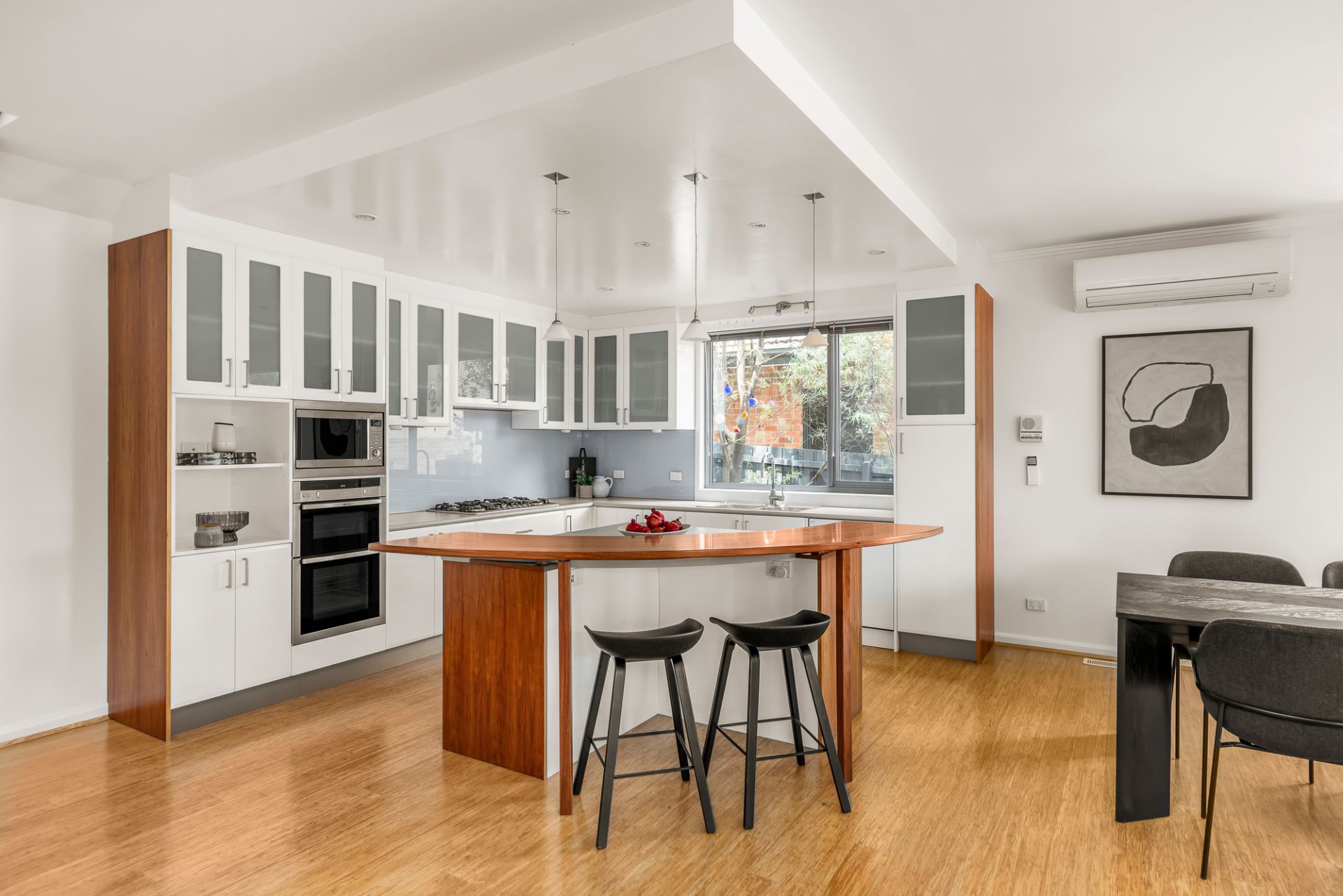 With thriving trees and diverse architecture central to the street’s appeal, the home itself offers families room to expand as the years go on, unfolding over two superb storeys. Hardwood floors and ornate cornices offer a nod to period roots, while entwined front office and sitting areas join a fitted second study in heightening real-world usability. An accomplished entertainer, open living and dining zones flank a kitchen boasting upscale Neff and Asko appliances, while sliding doors transform the space into a warm-weather haven. A broad deck soaks in sun from northern and western sides, with a substantial backyard’s lush foliage a brilliant backdrop for blue-sky barbecues.