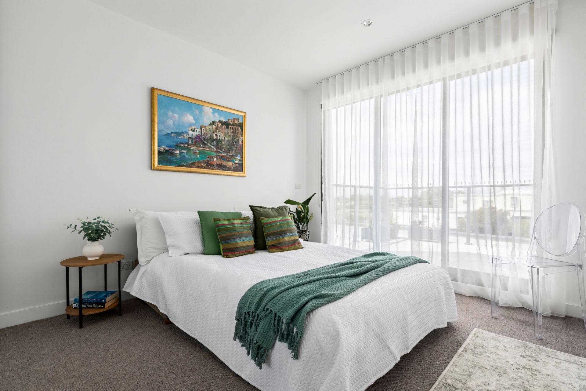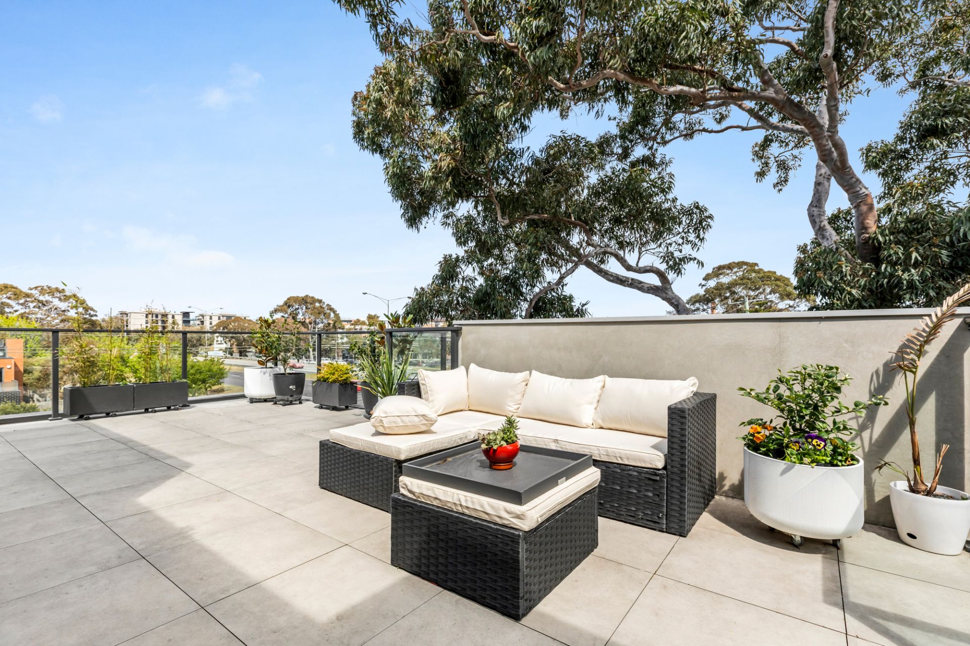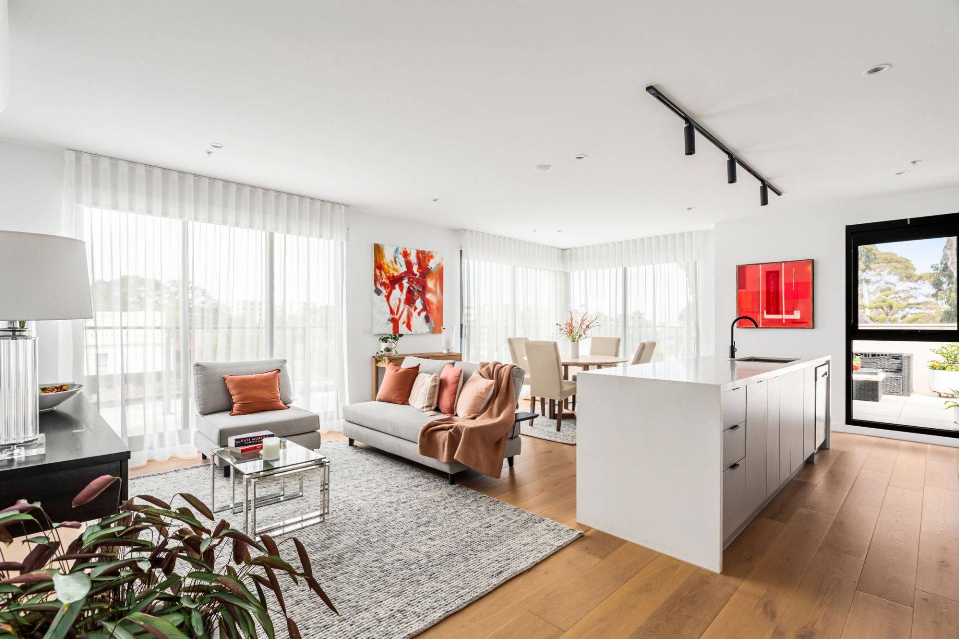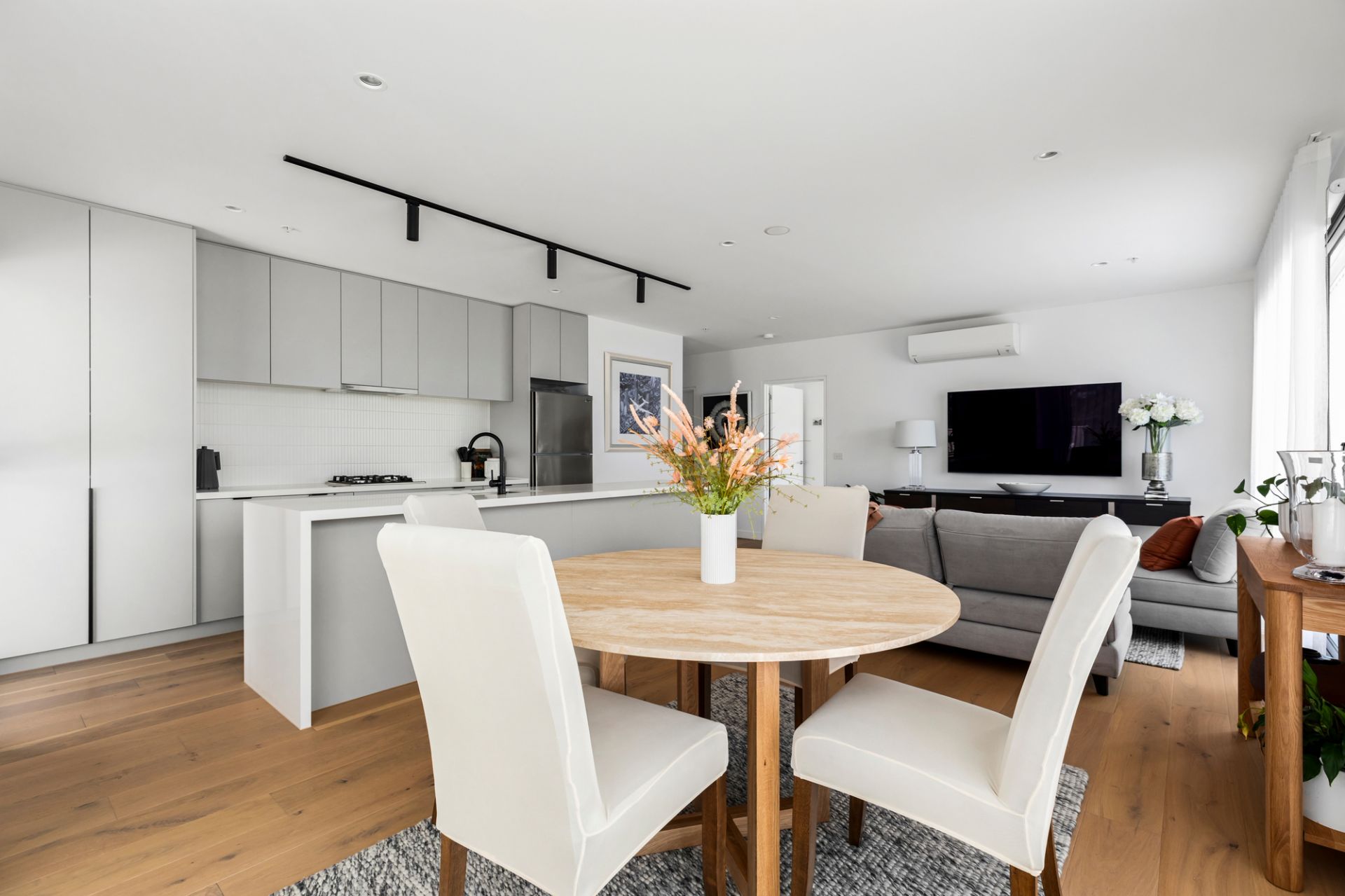 Perched on the top floor, this boutique penthouse combines clever design with contemporary sophistication. Thoughtfully proportioned interiors of approximately 94m² are complemented by an expansive 67m² wraparound balcony — ideal for entertaining or quiet evenings outdoors.