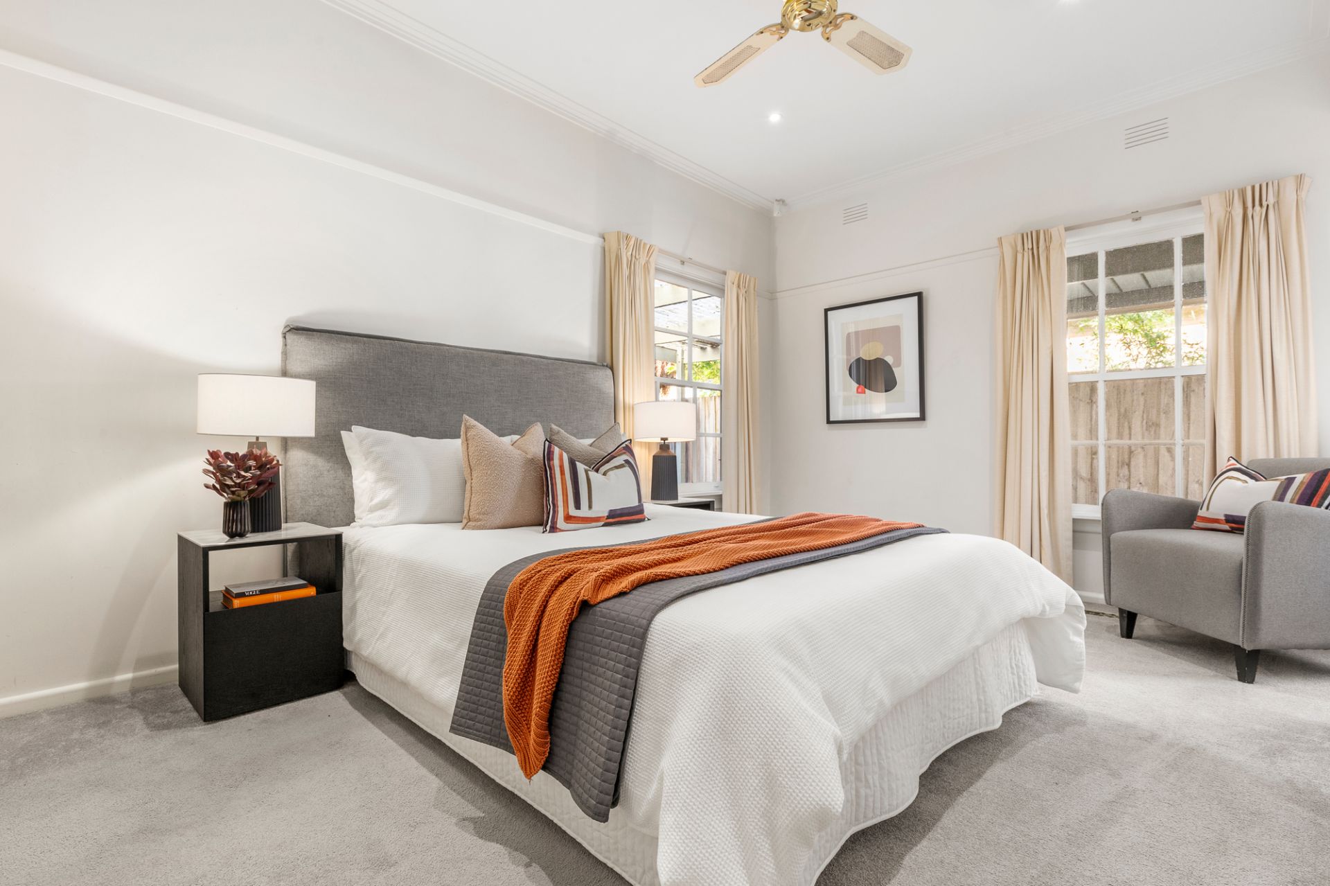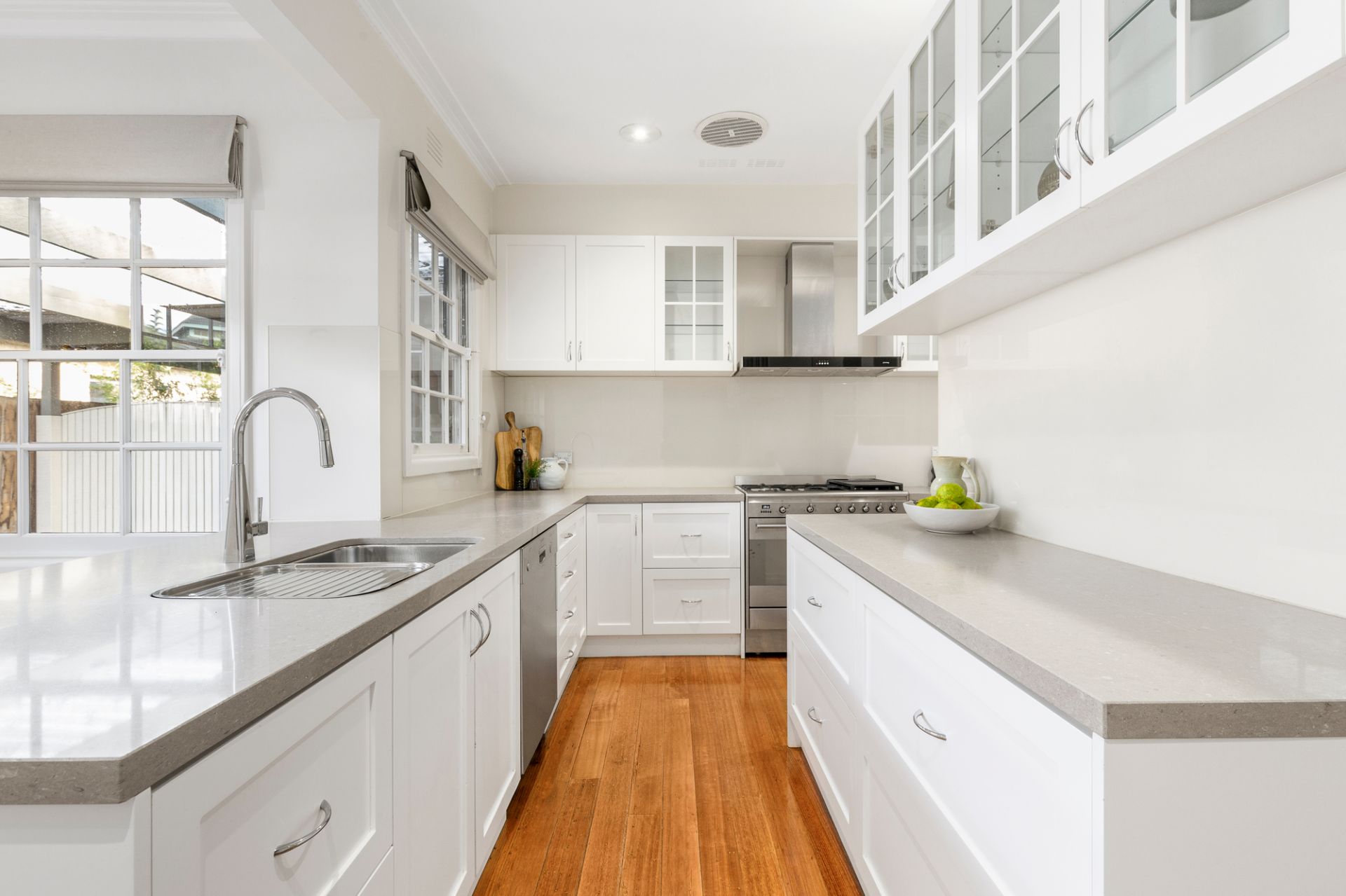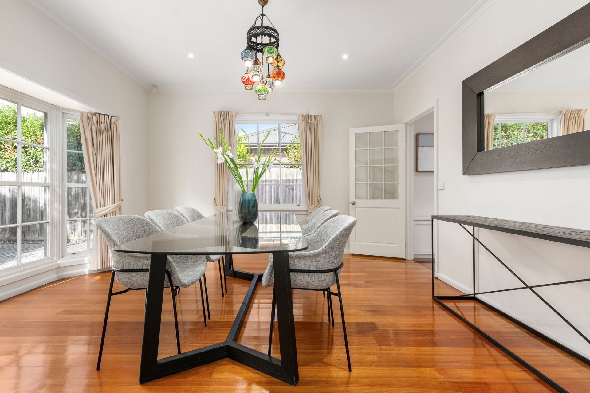 As charming and charismatic as it was upon construction over 70 years ago, an inviting facade and considerable front yard prelude an interior that’s both spacious and versatile. With green outlooks available from every corner, three generous bedrooms, two revamped bathrooms, and a professional’s office sit centrally among distinct living zones, providing welcomed separation for growing families. Promising cosy nights come wintertime, a fire-side front lounge and broad dining space are capably served by a first-class kitchen, with sleek and durable stone benches joined by a 900mm Smeg cooker, Bosch dishwasher, and plentiful cabinetry. A quiet rear retreat integrates a kids’ study/play area, while sliding glass streamlines flow into a brilliant outdoor domain. Eastern and western entertaining spaces are ideal for capturing sun at any hour of day, with lush greenery ensuring complete privacy in a solar-heated pool. A standalone studio is equally adept as a leisure space or pool house, while other highlights include hardwood floors, ducted heating, refrigerated cooling, substantial attic storage, built-in robes, a large laundry, outdoor shower, carport, and secure driveway parking for three.