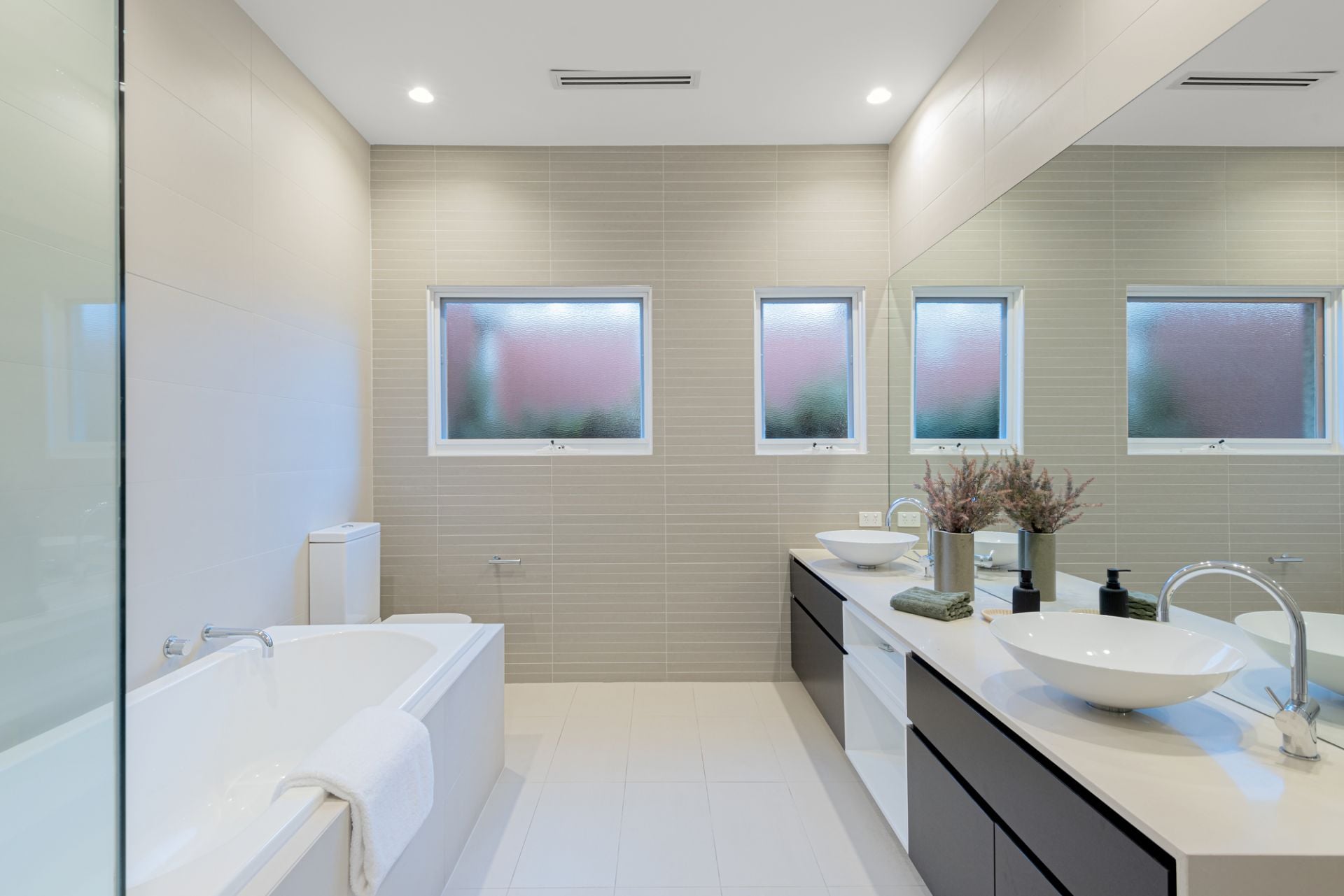 Additional features include a powder room, laundry with extensive storage, plantation shutters and zoned heating and cooling.