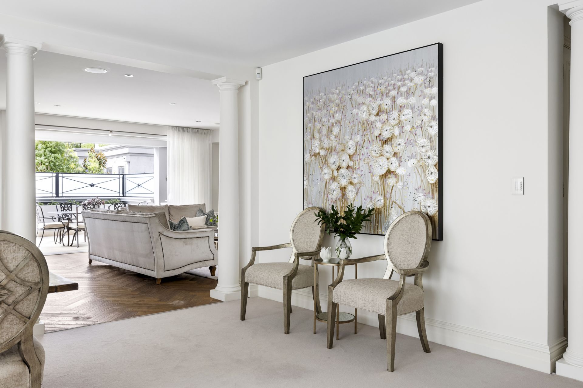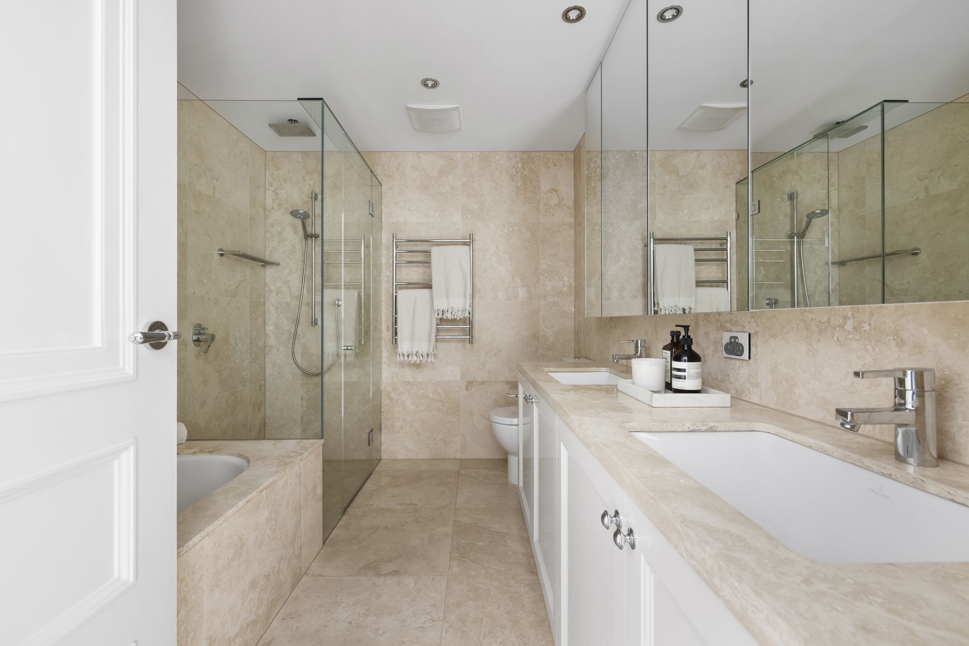 Inside, the apartment features three oversized bedrooms, each with its own travertine tiled ensuite. The flexible layout includes two master suites with walk-in robes, providing an abundance of storage. The formal lounge, with gas fireplace, and spacious dining area are ideal for hosting guests, while the open-plan Miele appointed kitchen with meals area seamlessly flow into a second informal sitting area and large north-facing terrace, which includes an electric awning, creating a perfect setting for year-round entertaining.