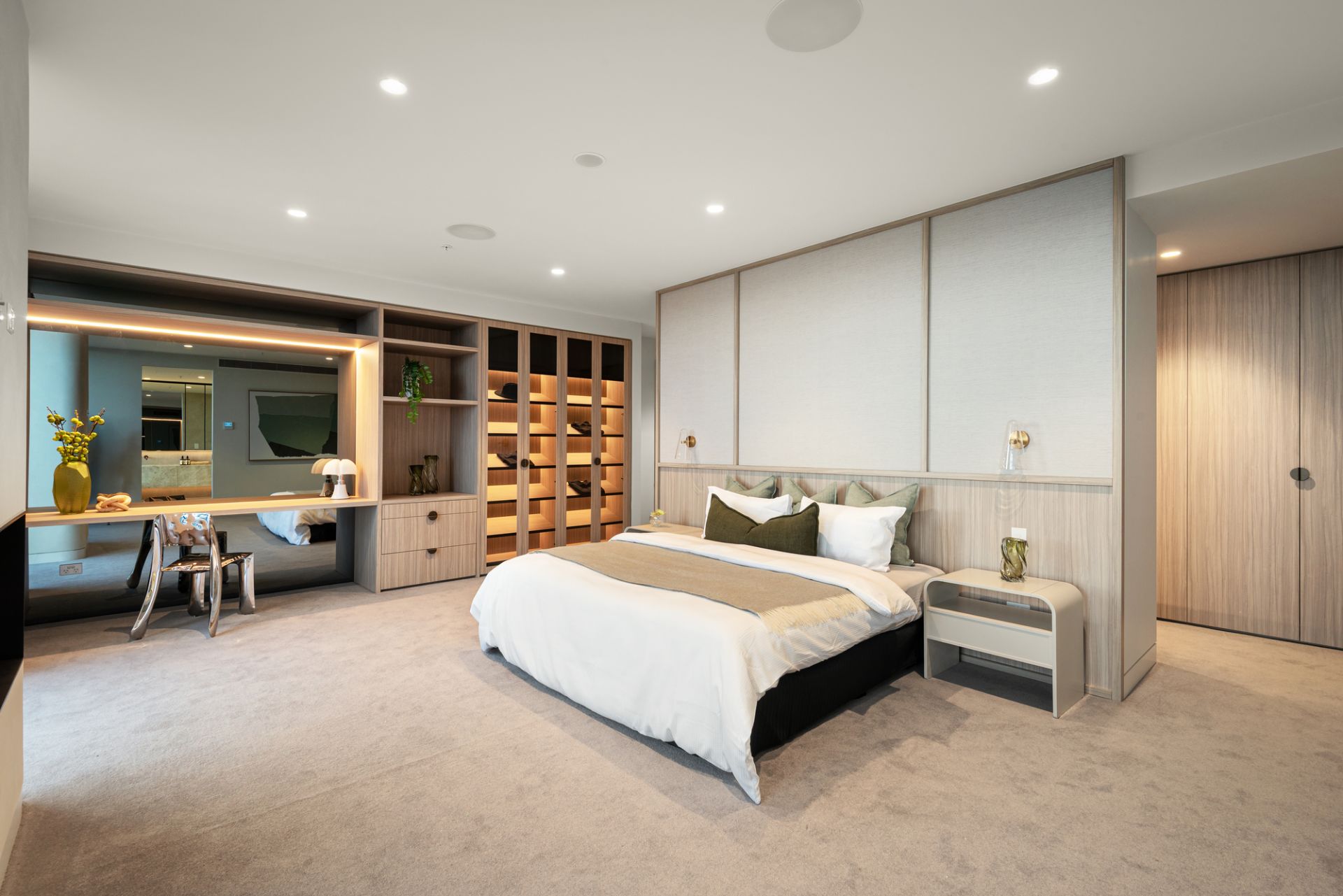 Accommodation comprises three oversized bedrooms, each with ensuite access and elevated outlooks. The master suite boasts a private terrace, walk-in dressing room and hotel-inspired ensuite, creating a retreat of unrivalled comfort.