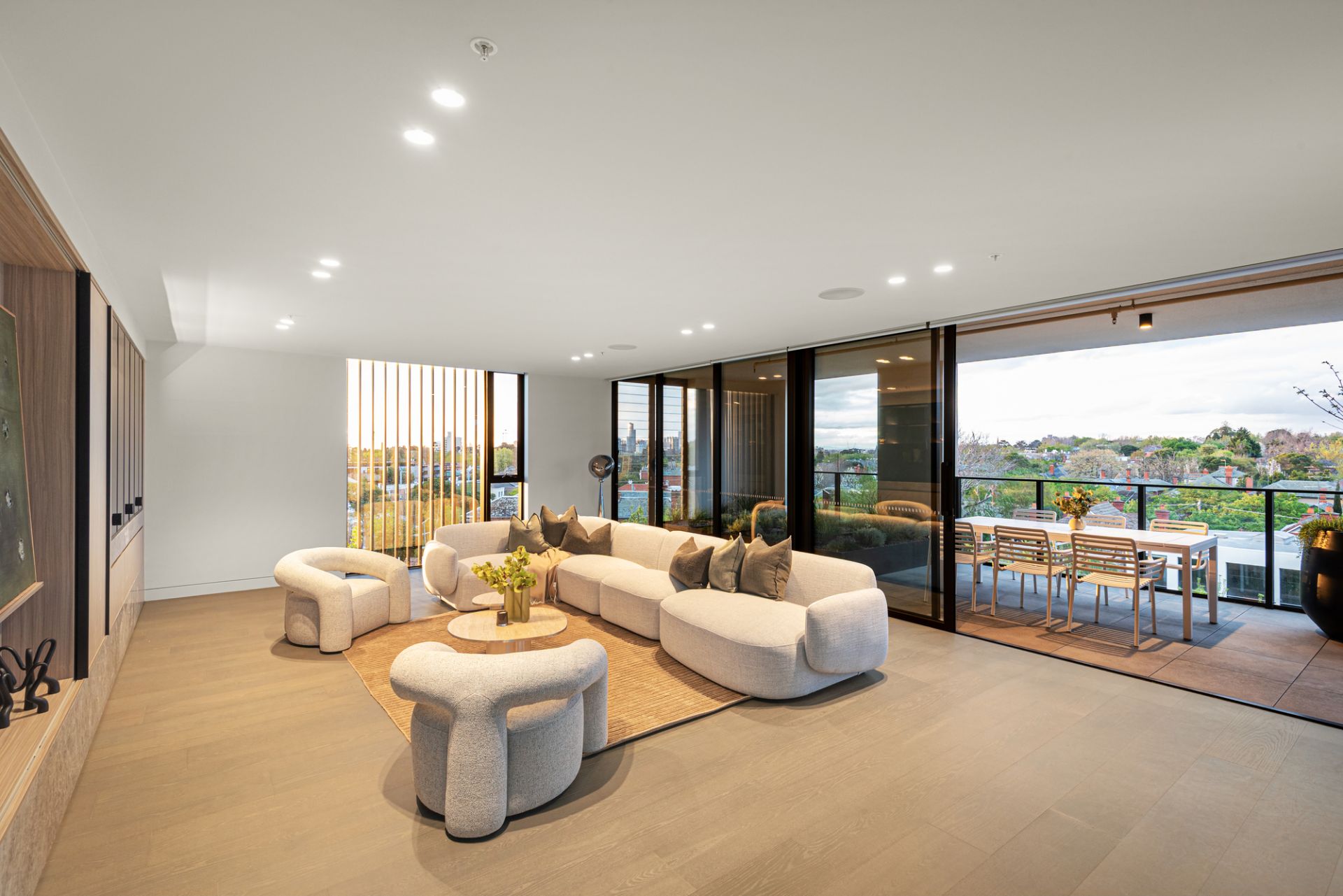 Nestled within an exclusive collection of just nine residences, this luxurious full-floor apartment in the newly completed The Carlile epitomises refined low-maintenance living. Occupying the entire fourth floor, it is bathed in exceptional northern light and showcases sweeping city views, delivering a rare combination of space, privacy and sophistication – with High Street on the doorstep and Glenferrie Road and Beatty Avenue just a short stroll away.