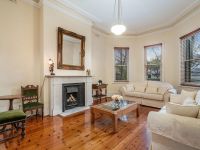 The showstoppers include the light filled living room with white marble fireplace and triple bay window overlooking the verdant garden, and a magnificent dining room which harks back to a golden era of formal living. Its elaborate tiled fireplace with oversized marble mantelpiece remains a stunning feature. Three large bedrooms, all with marble mantels, including one at the front with garden views. The large fourth bedroom with ensuite, has views of the back garden and pool.