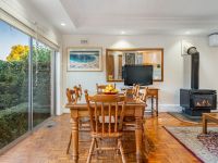 A fitted study and central bathroom are also off the hall, while the informal living room, warmed by a classic Coonara wood heater, offers modern open plan living with expansive garden outlook.