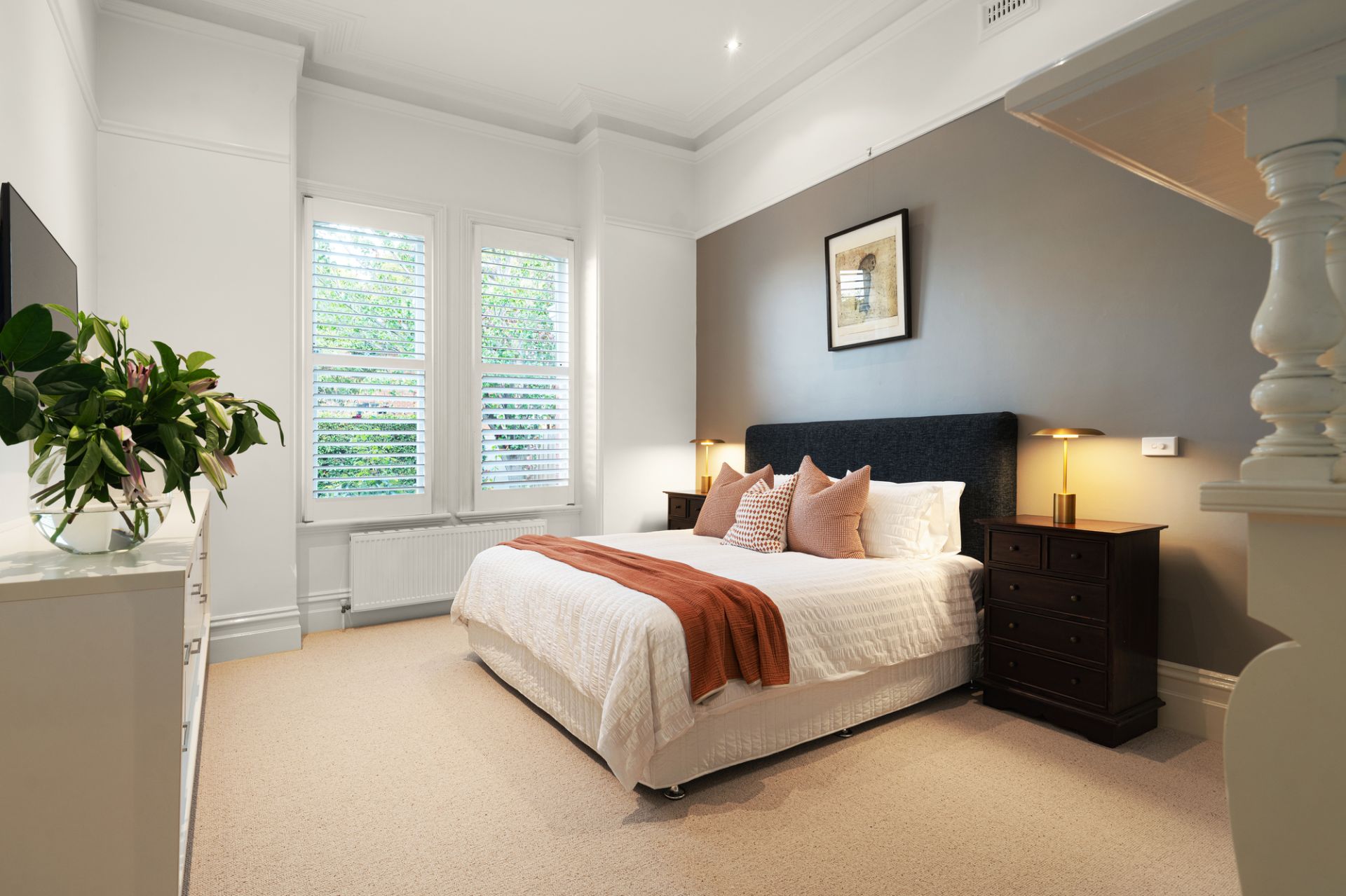 A genuine icon of its prestigious no through road, the alluring facade’s meticulous tuckpointing, iron lacework, leadlight windows, and tessellated-tile veranda offer a charming precursor of spaces to come, where old-world features in Baltic Pine floors, fireplaces, and soaring, ornate ceilings are contrasted by the finest of today’s luxuries. Providing the option of single -level living, a broad lower guest room and luxe central bathroom complement a magnificent main bedroom with twin-basin ensuite. Whilst upstairs a skylit bathroom parts third and fourth bedrooms.